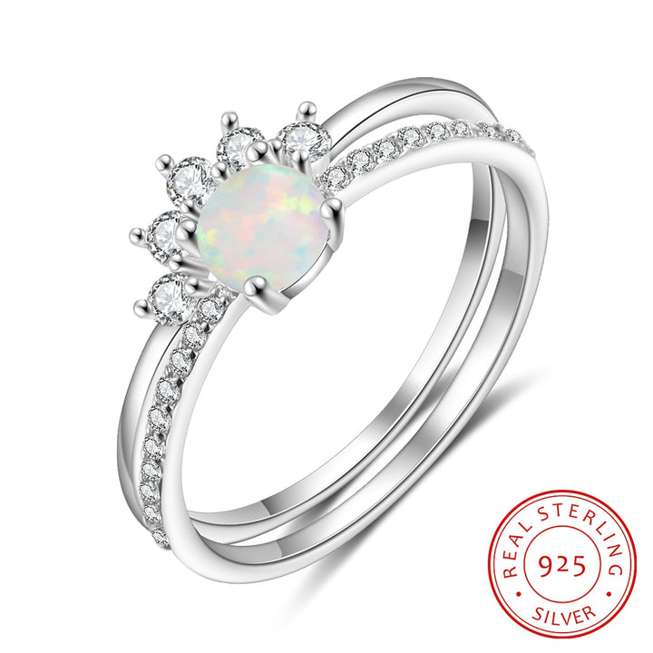 Sterling Silver Stackable Opal Clear Ring Set of 2
