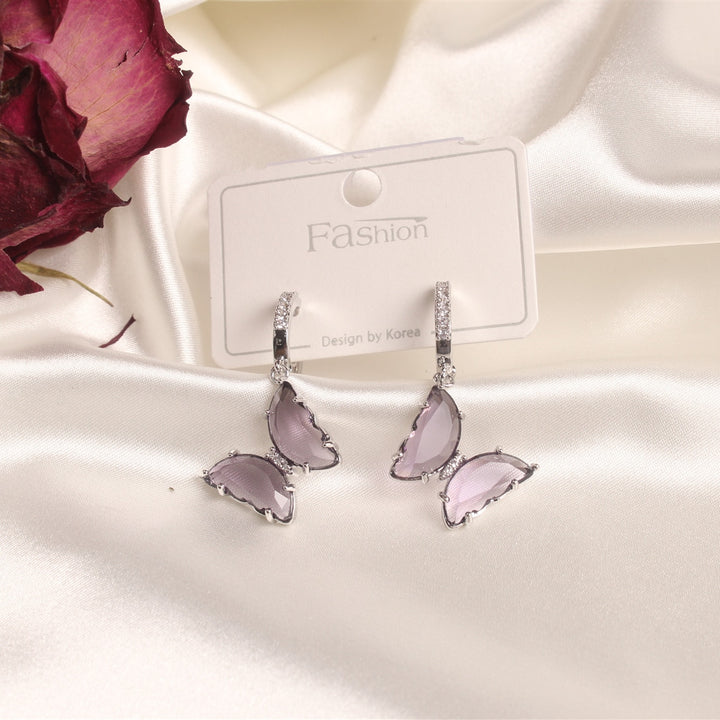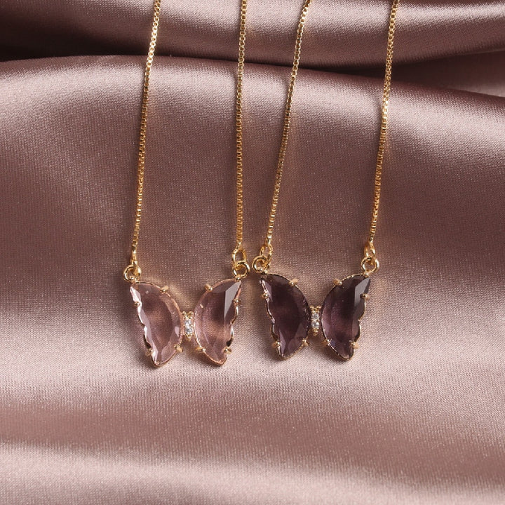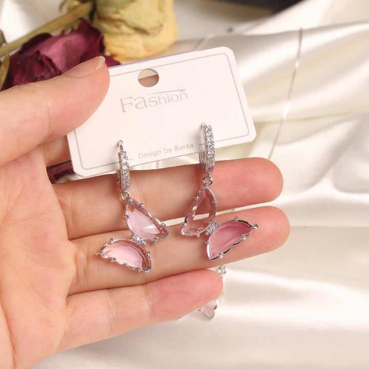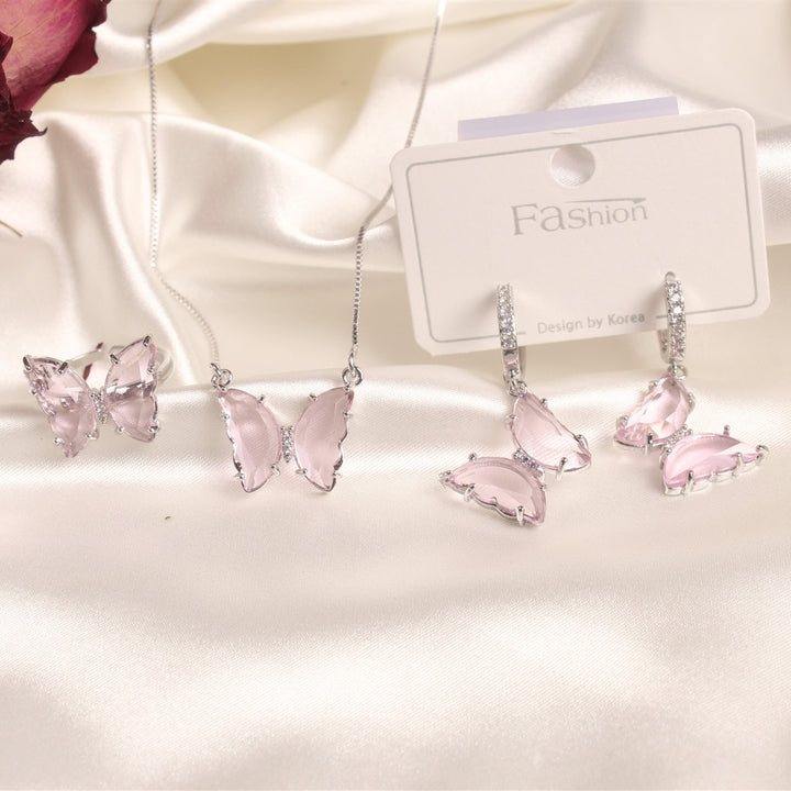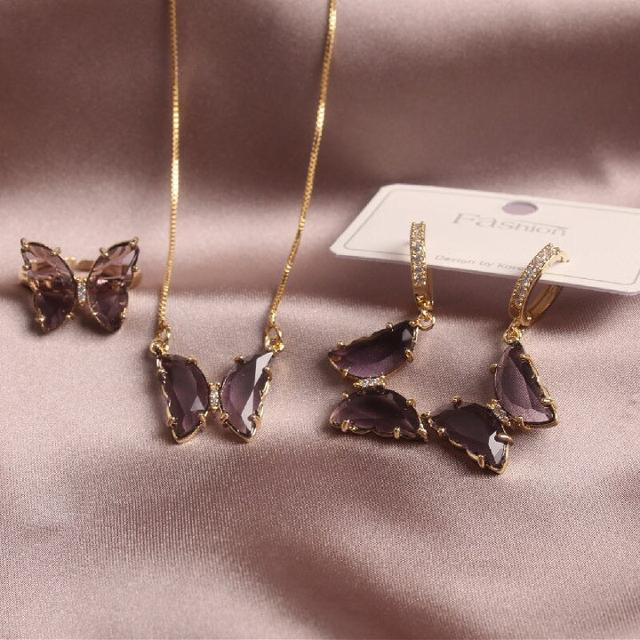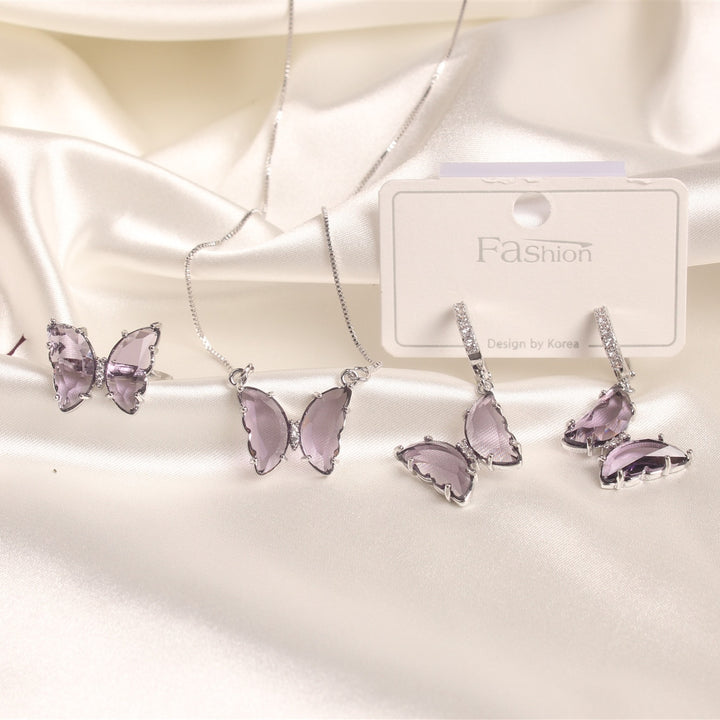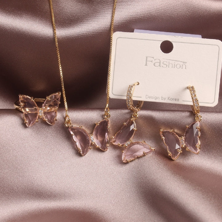 Exquisite Glass Butterfly Necklace Ring Earrings Separates