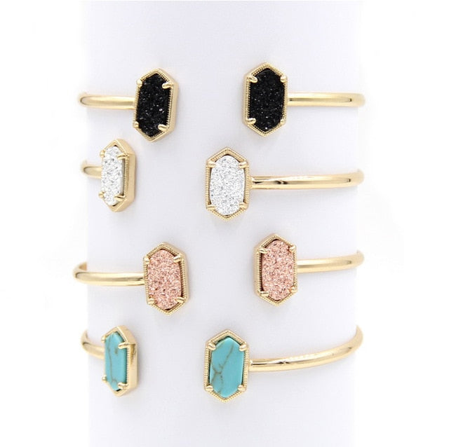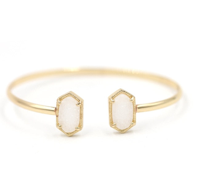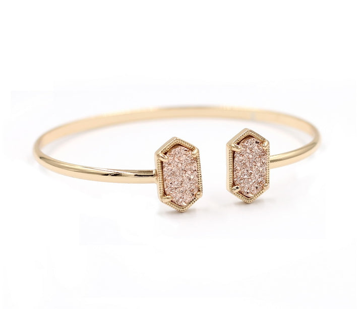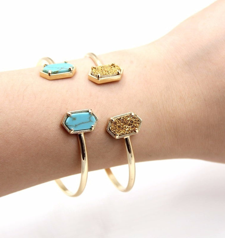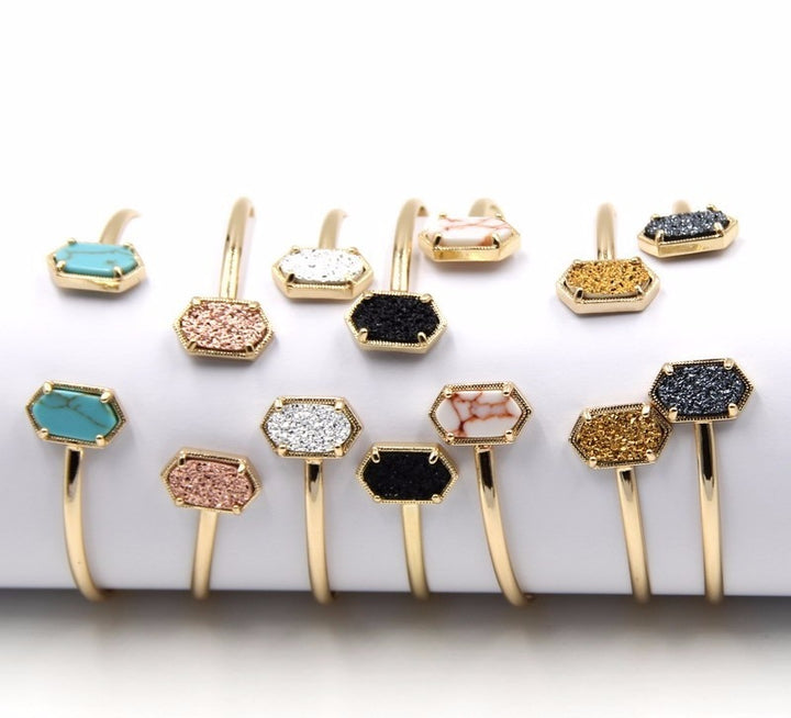 Stone Cut Small Oval Quartze Resin Druzy Bangles