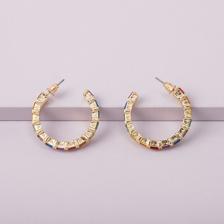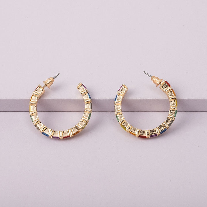 Chic Colorful Acrylic Geo Stones Fashion Hoop Earrings