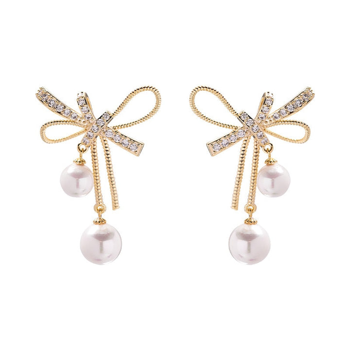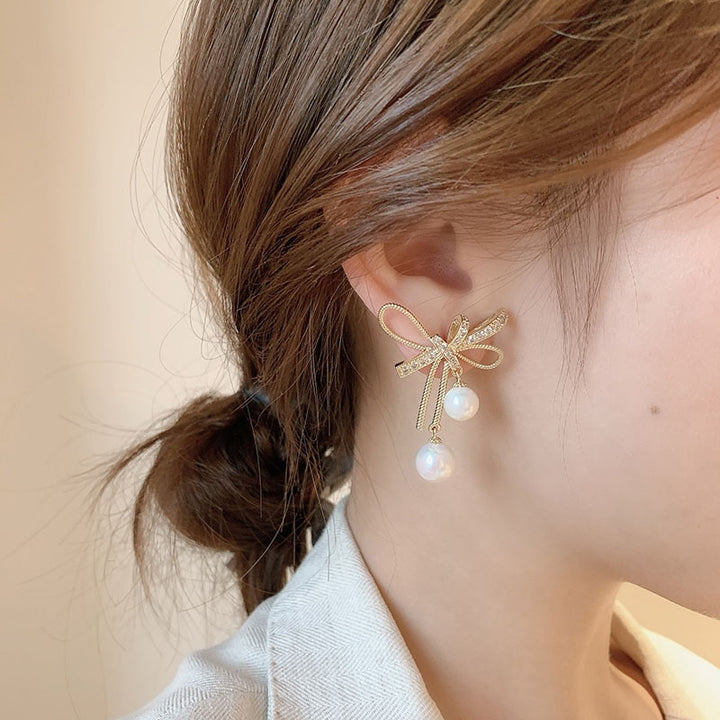 Bow And Pearls Dangle Earrings