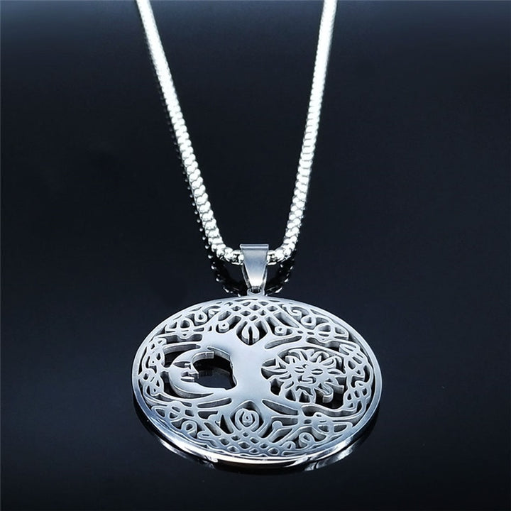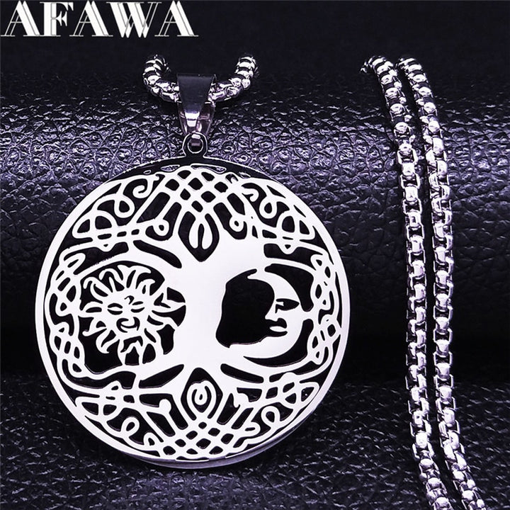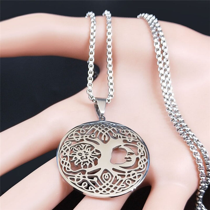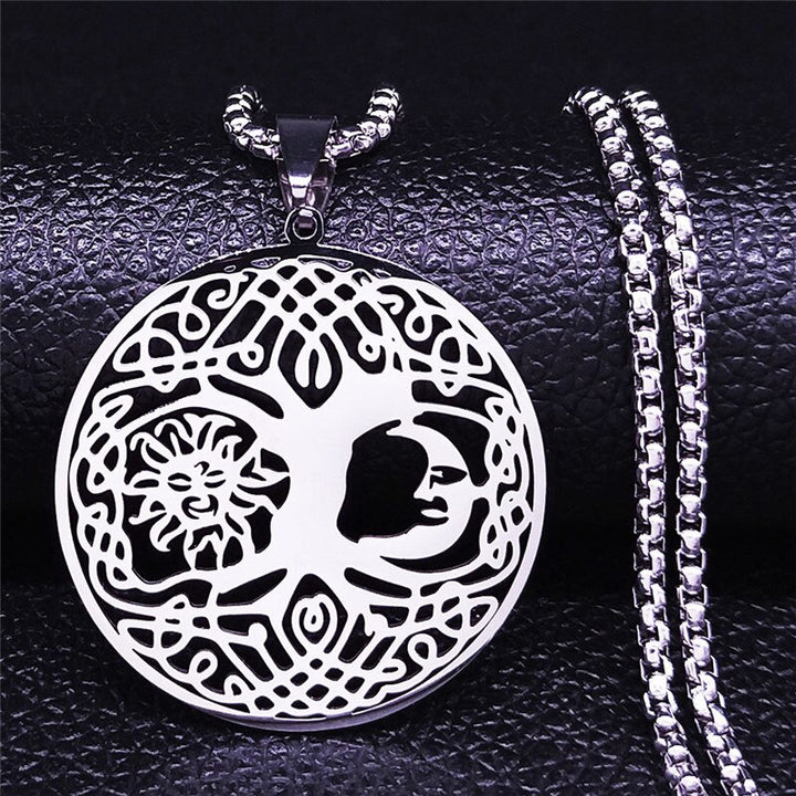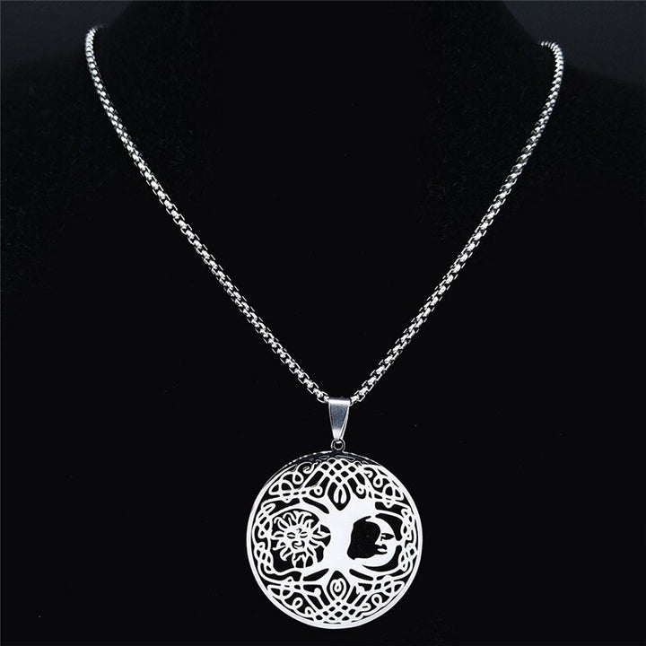 Irish Knot Sun Moon Stainless Steel Chain Necklace