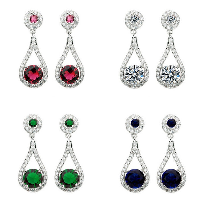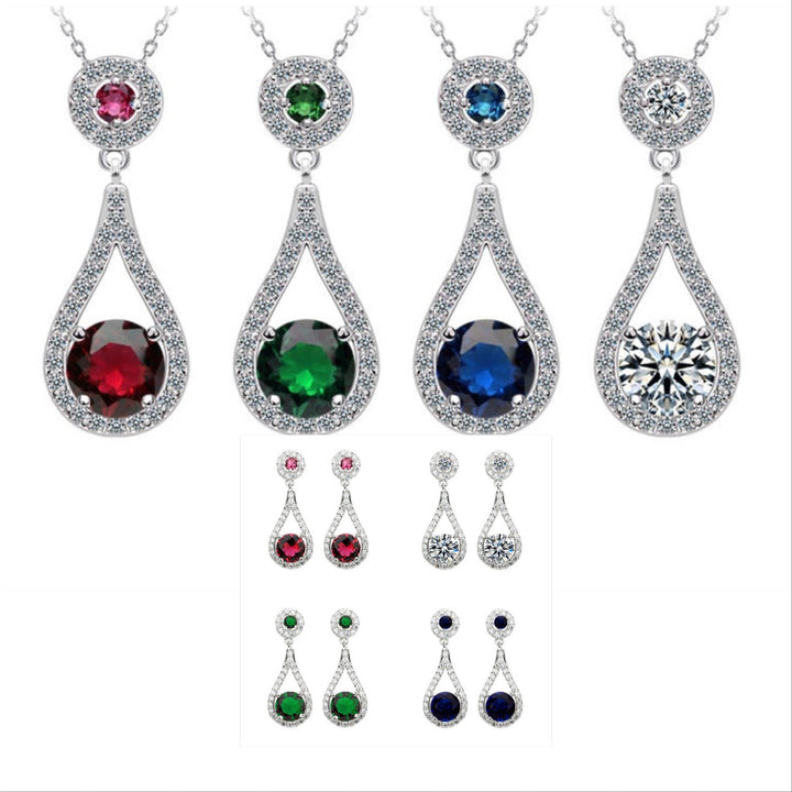 Elegant Silver Multi Color Drop Necklace Earring Set