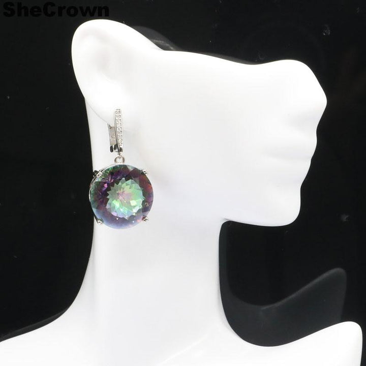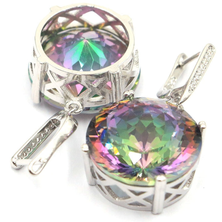 Fire Rainbow Mystic Pink Topaz Silver Pendant Earrings Separate Set