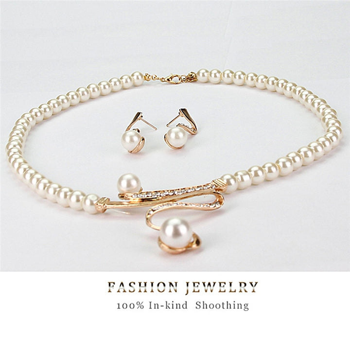 Elegant Pearl Rhinestone Necklace Earrings Set