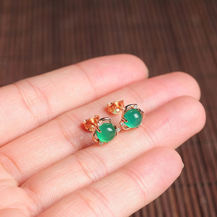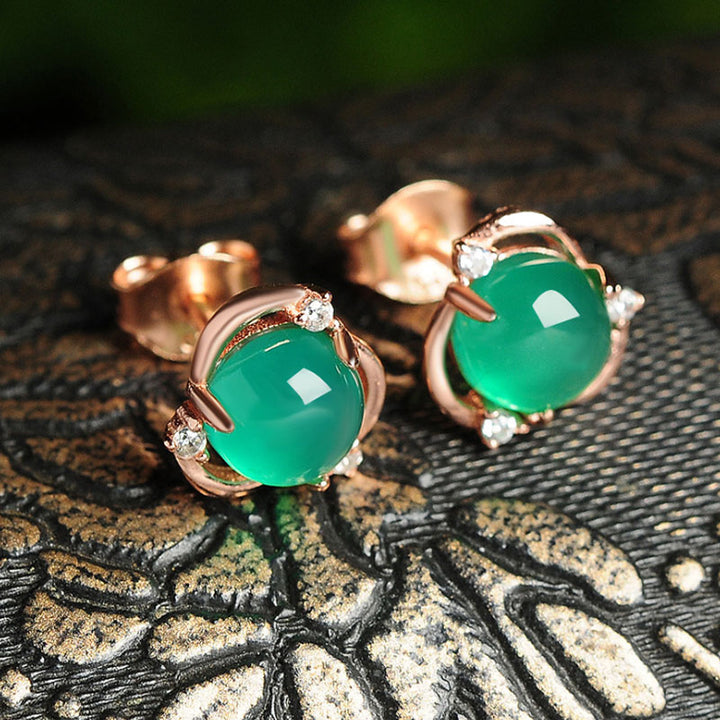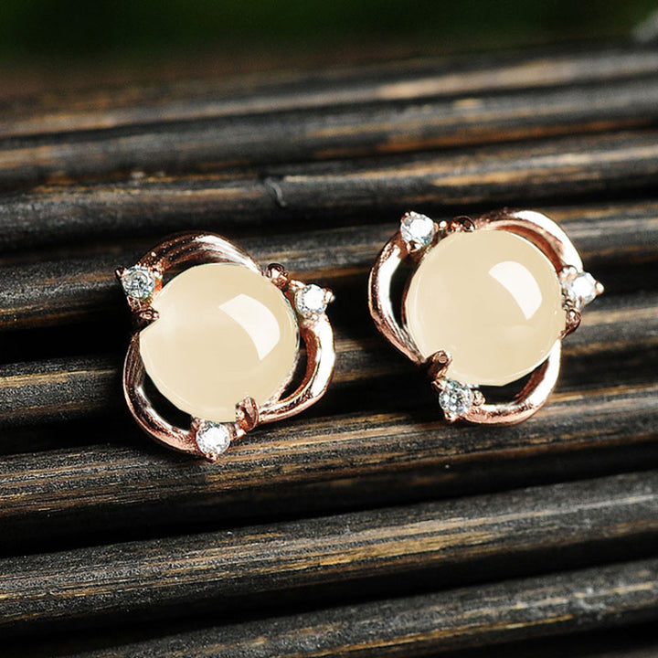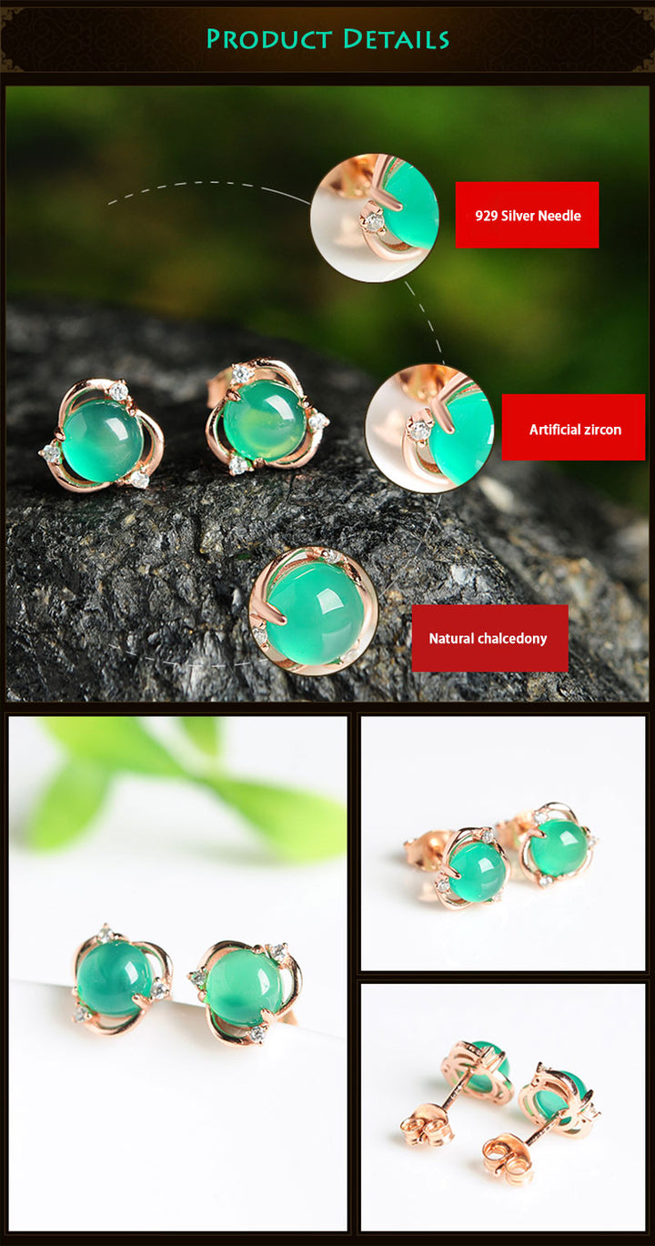 Chalcedony Egg Face Flower Synthetic Ice Transparent Earrings