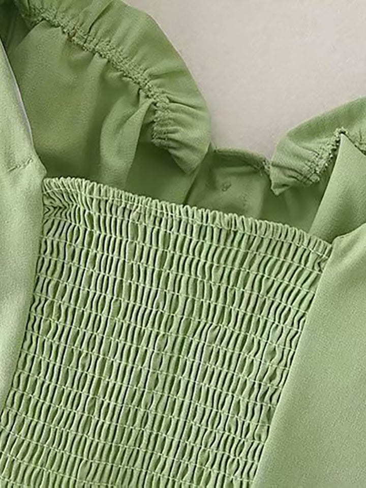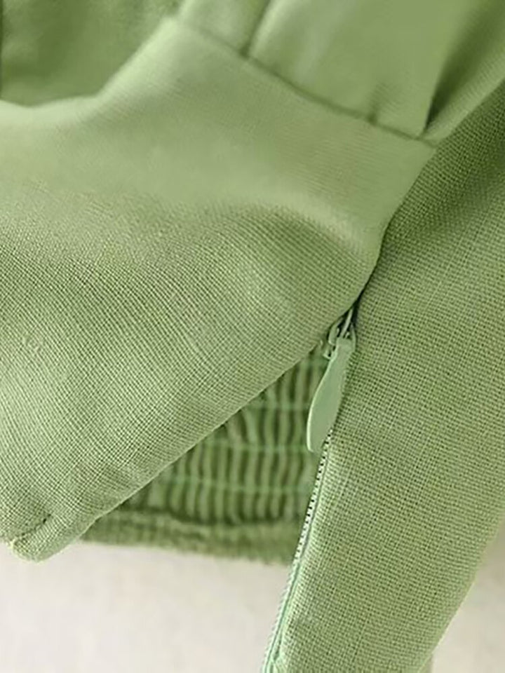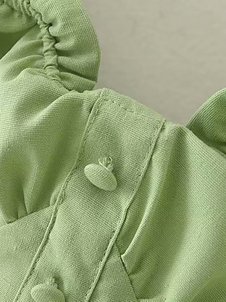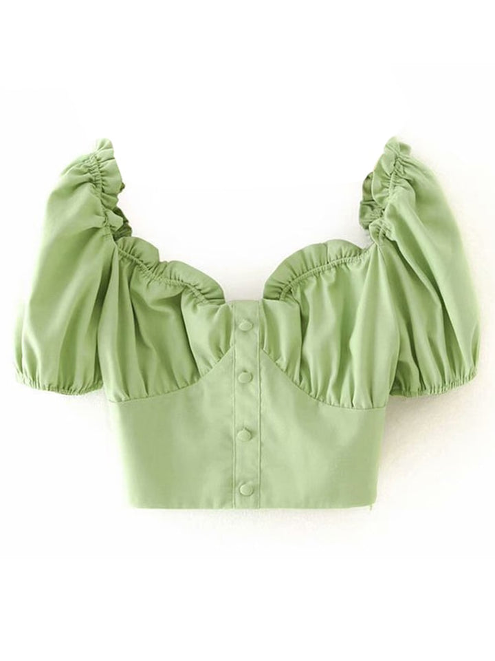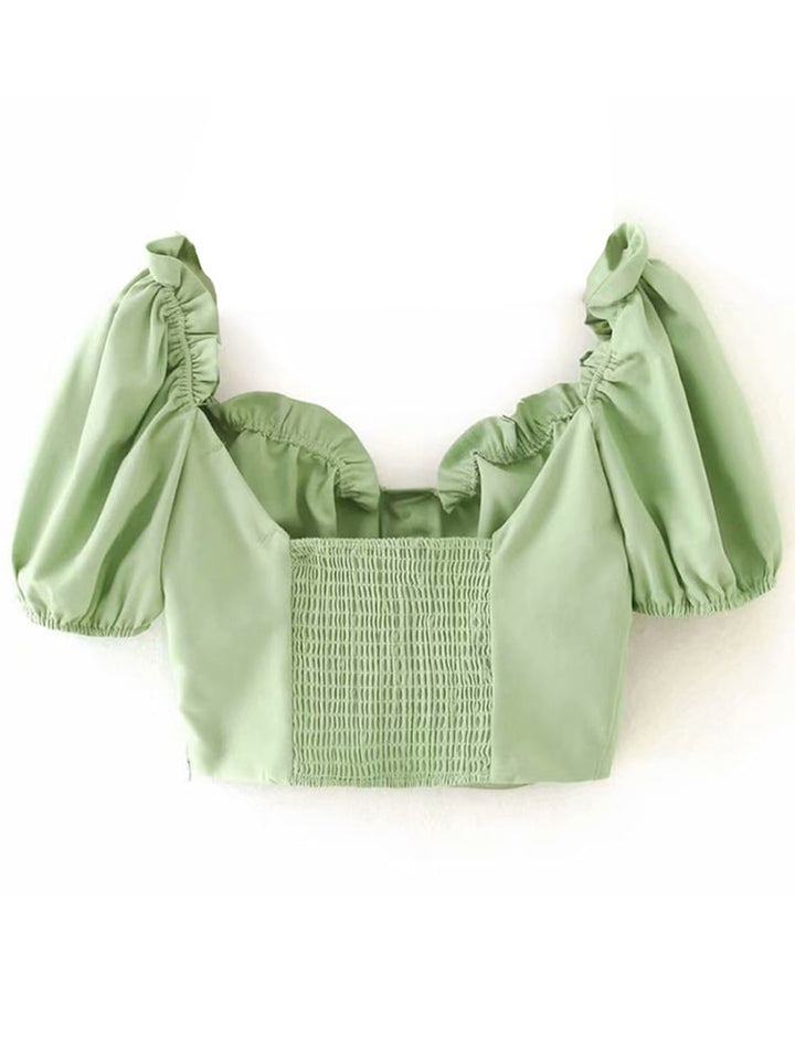Chic Ruffle Short Sleeve Cotton Linen Cropped Blouses