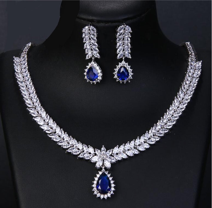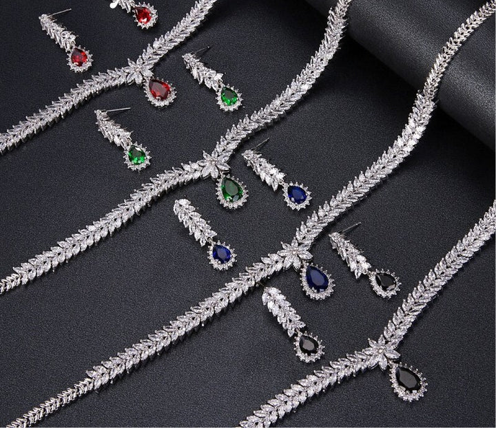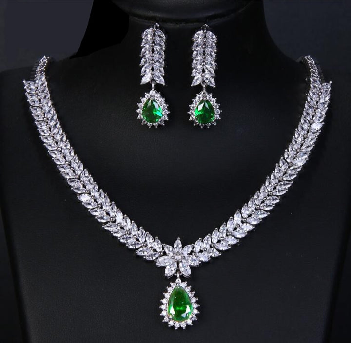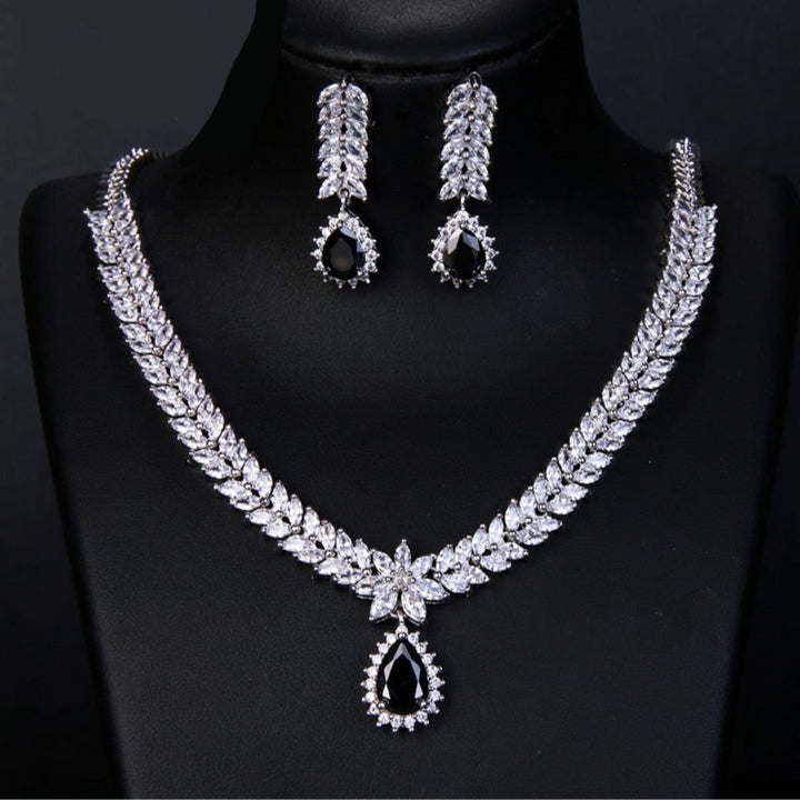 Classic Elegant CZ Necklace Earrings Set