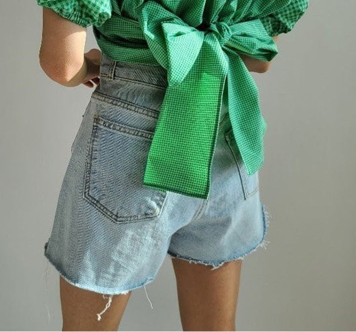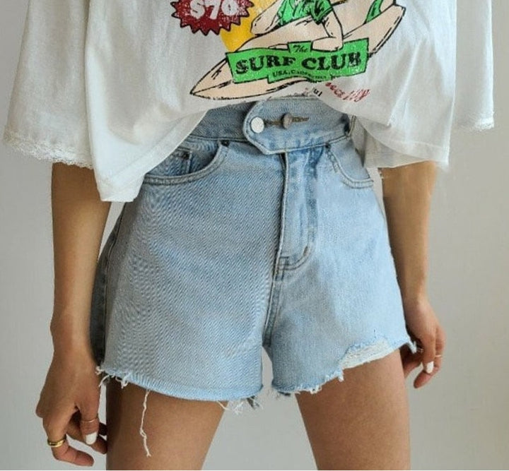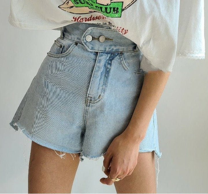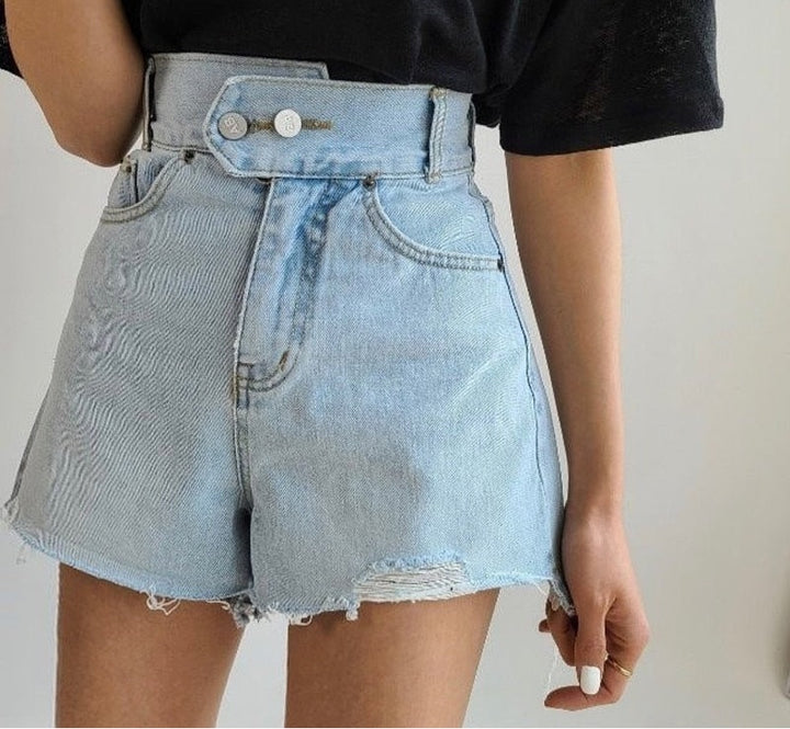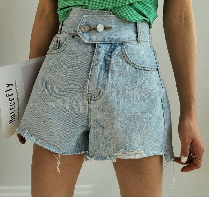 Chic Ripped Edge High Waist Double Button Jean Shorts
