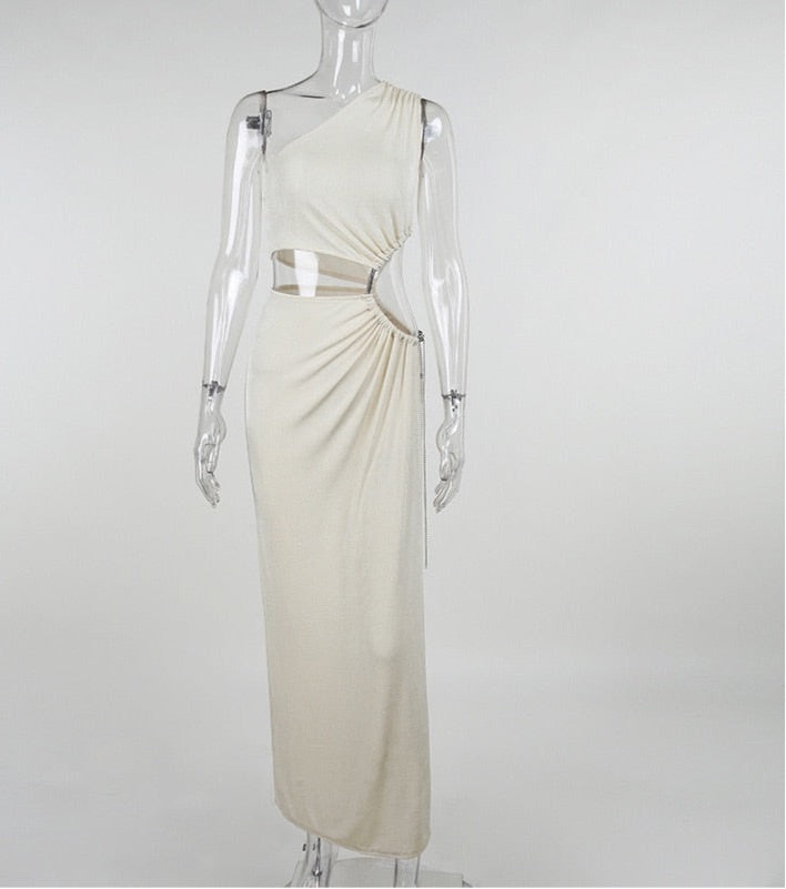Oblique Shoulder Hollow Bodycon Dress