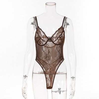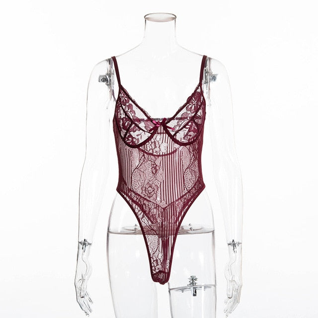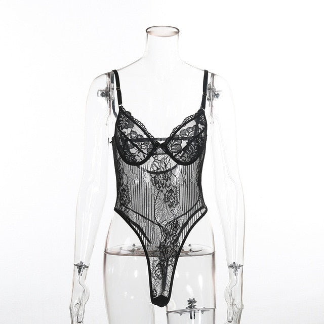 Sheer Lace Backless Bodysuit