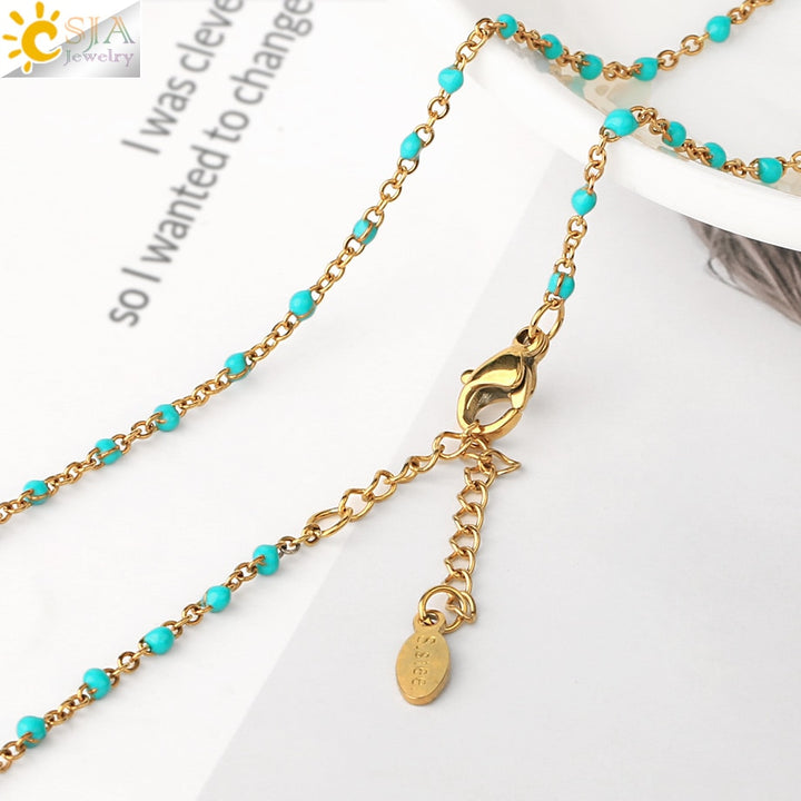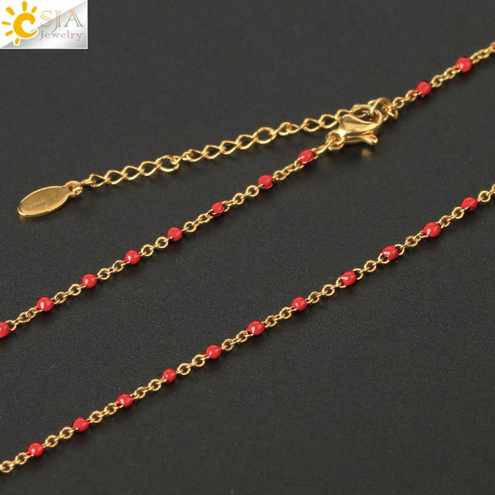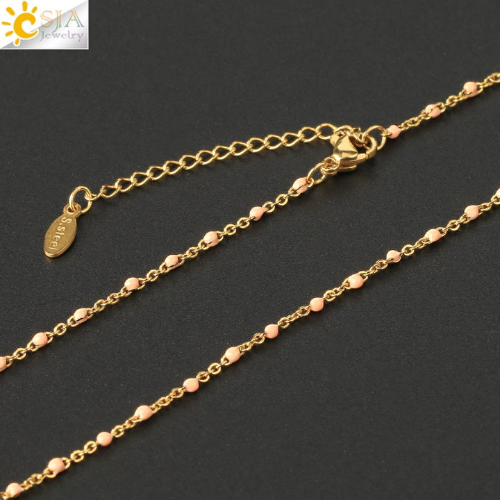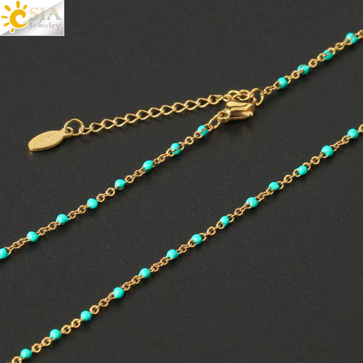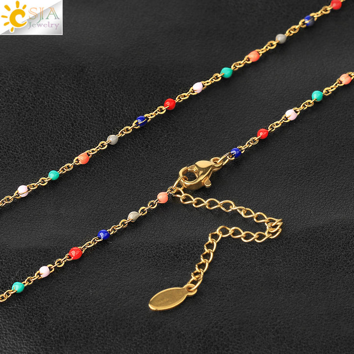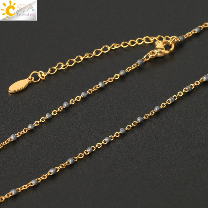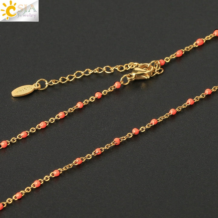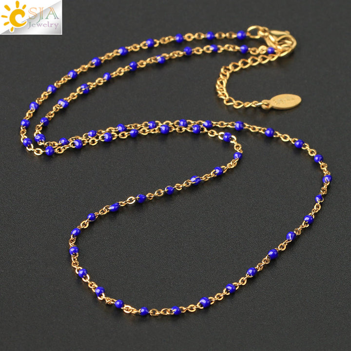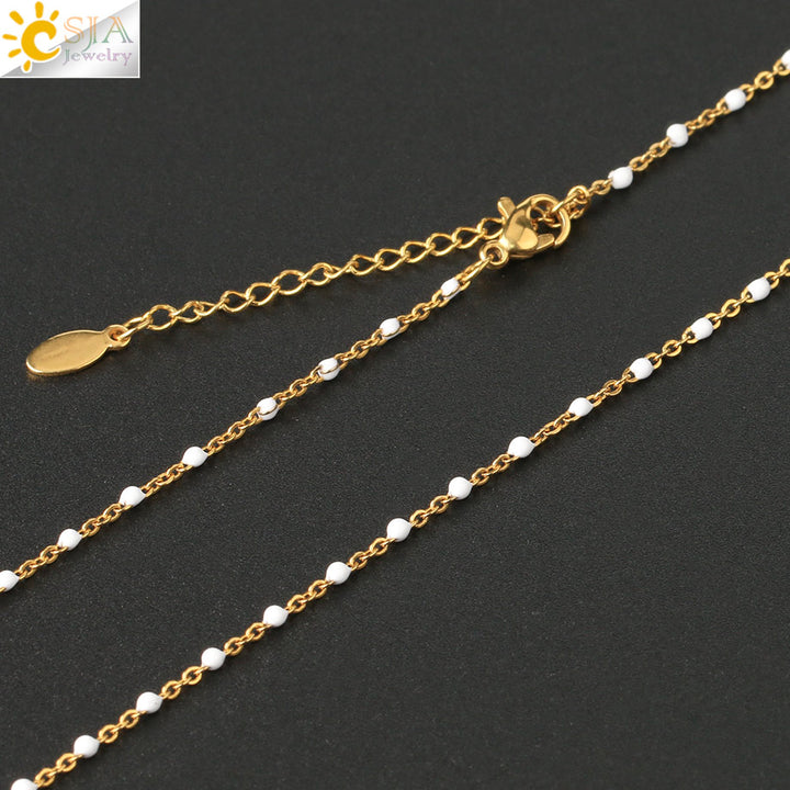 Necklace Feature: Thin Beads Chain , Stainless Steel Metal , Color not fade easliy