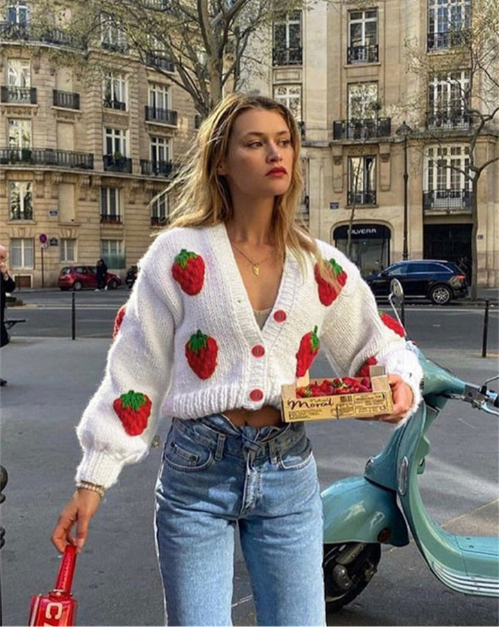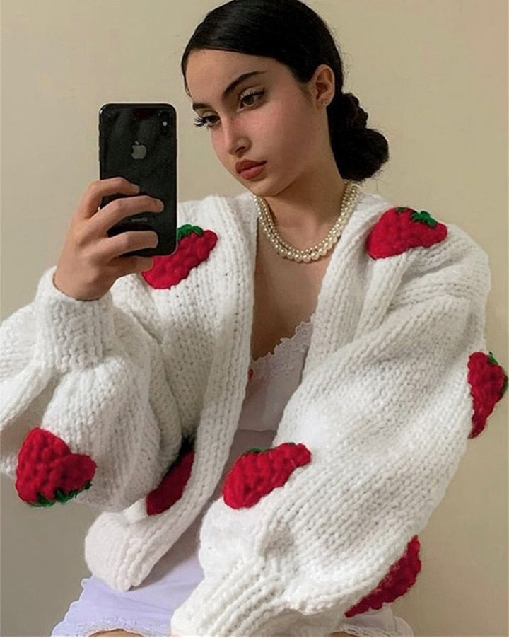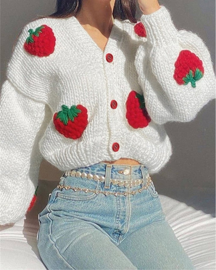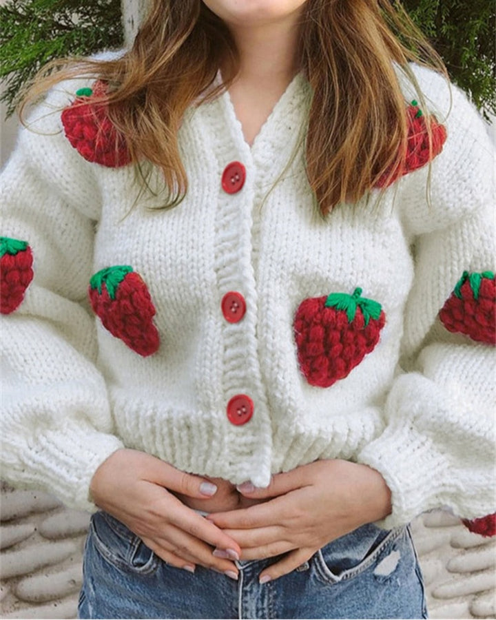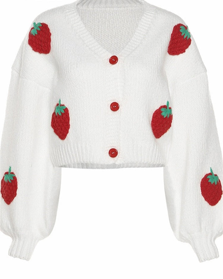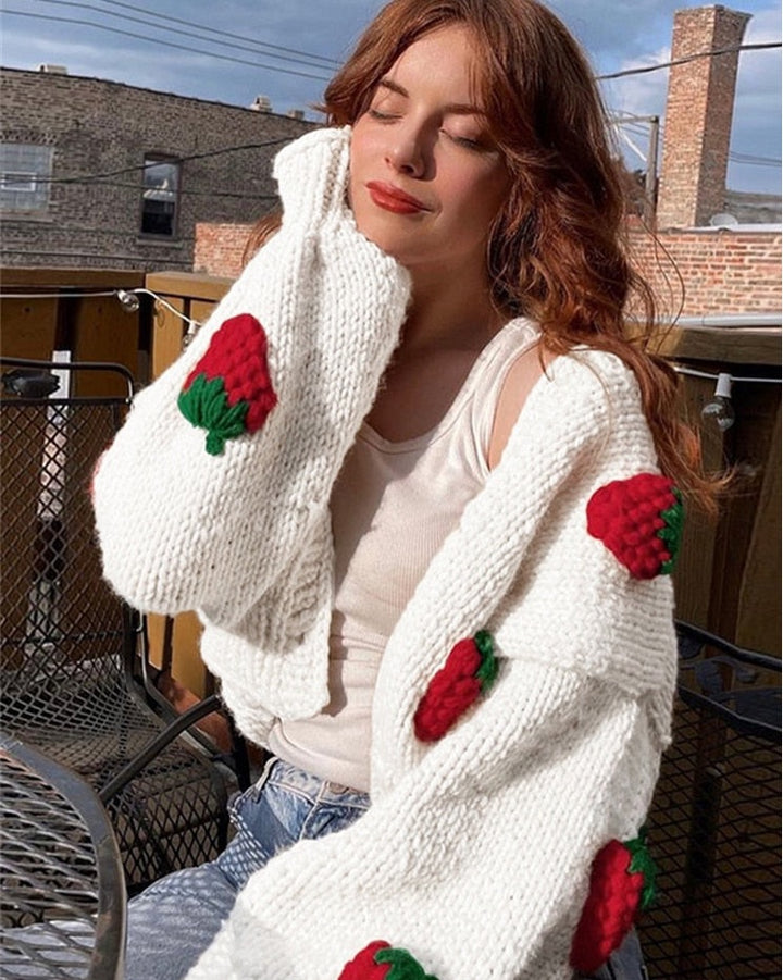 Strawberry Kintted Long Sleeve Loose Cardigan Sweater