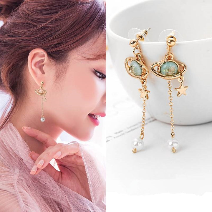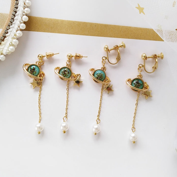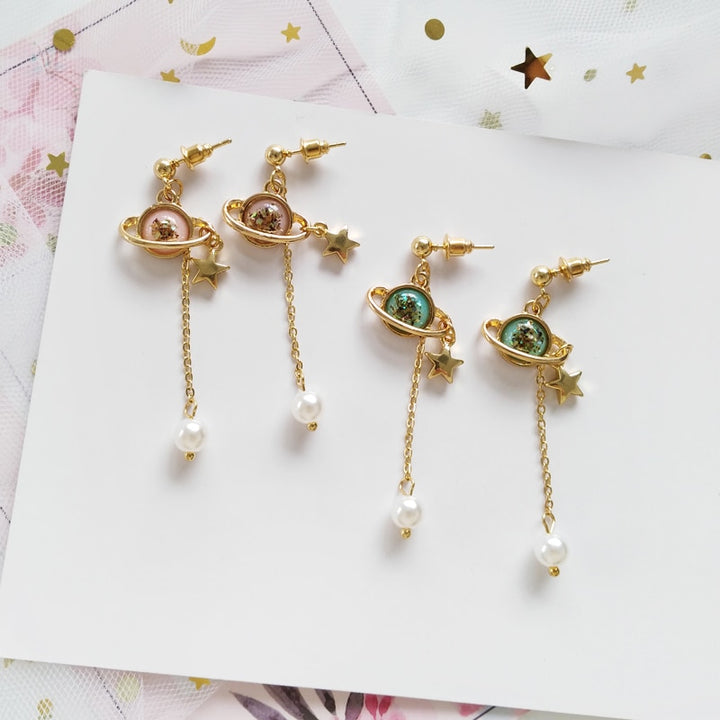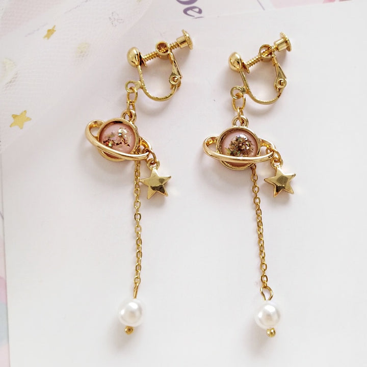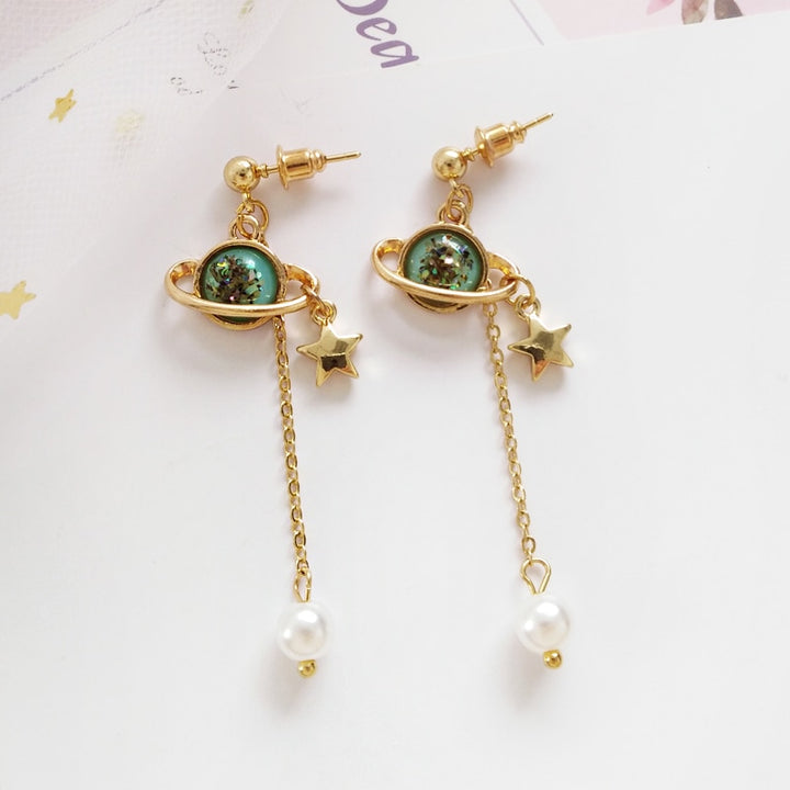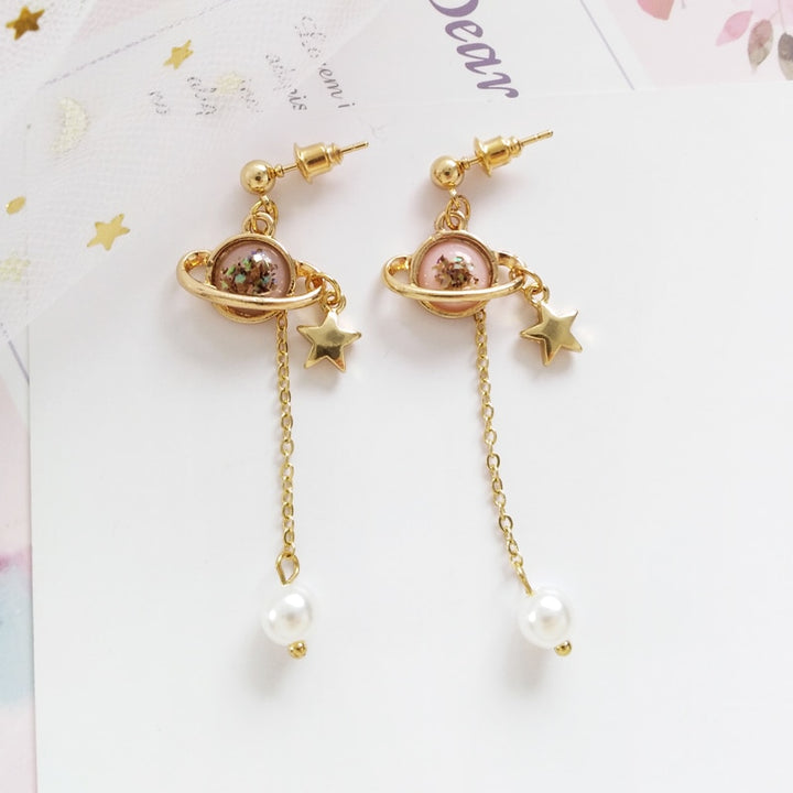Golden Stars Pearl Tassel Earrings