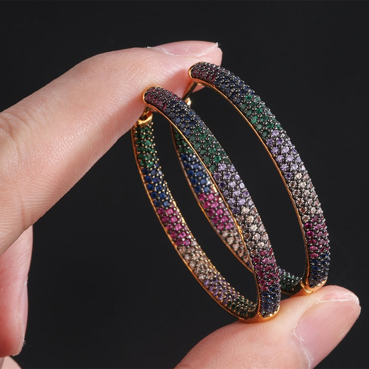 Two Tones Rainbow CZ Hoop Earrings