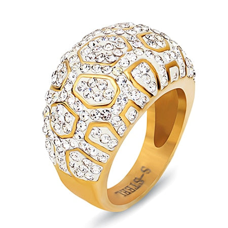 Gold Color Crystal Pave Rings