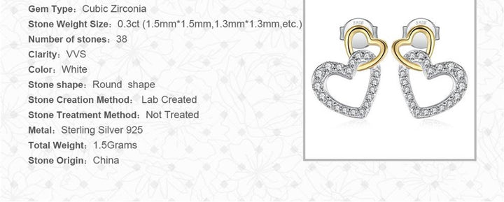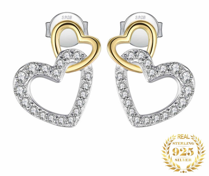 Love Heart Two Tone Stud Earrings