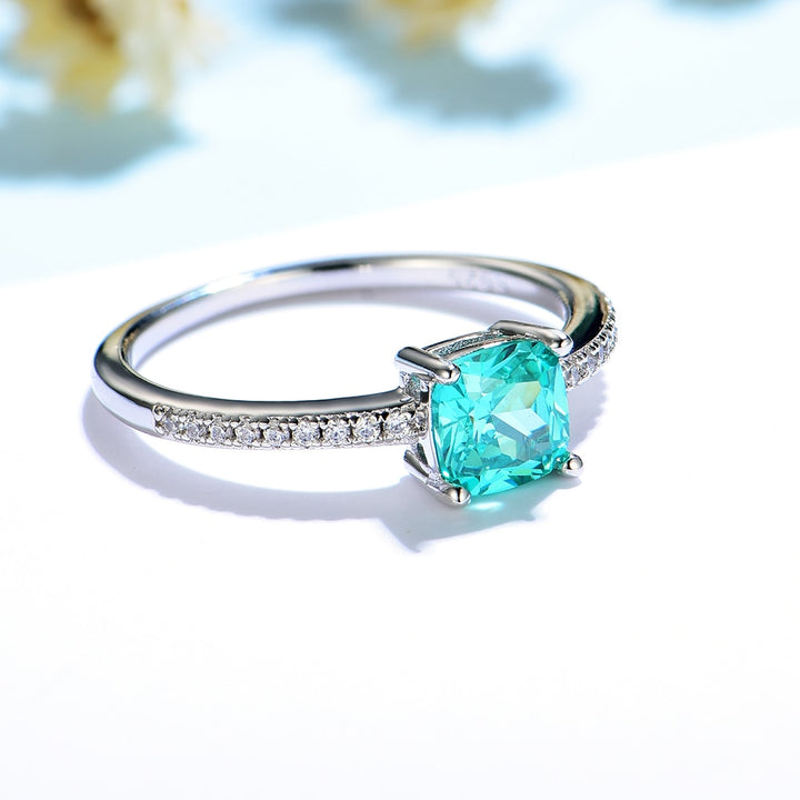 Center stone: Mint Sapphire/Paraiba gemstone