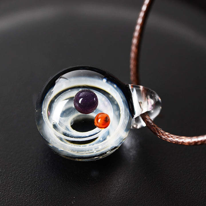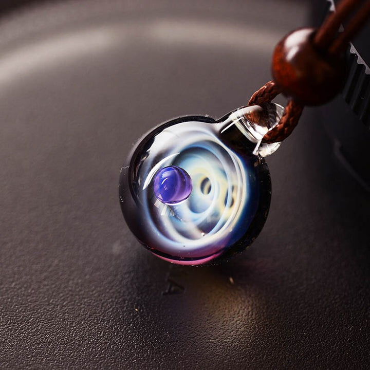 Cosmic Nebula Galaxy Glass Pendant Rope Necklace