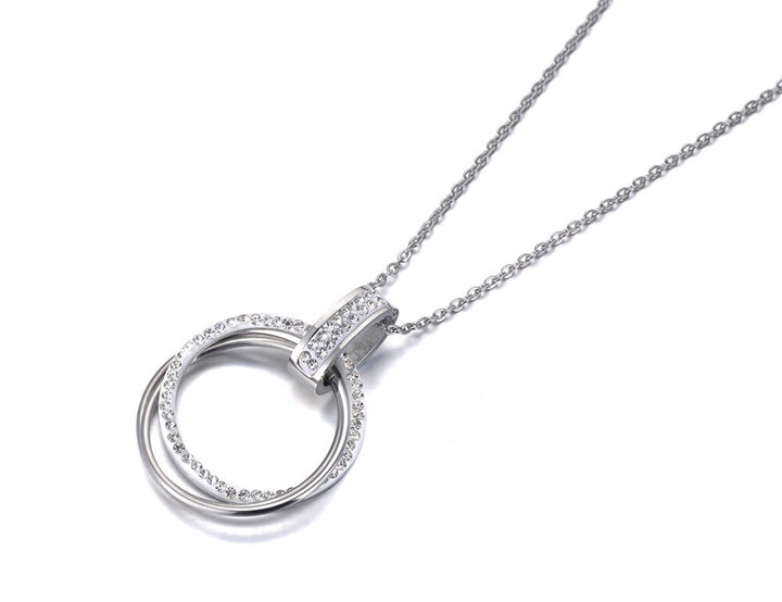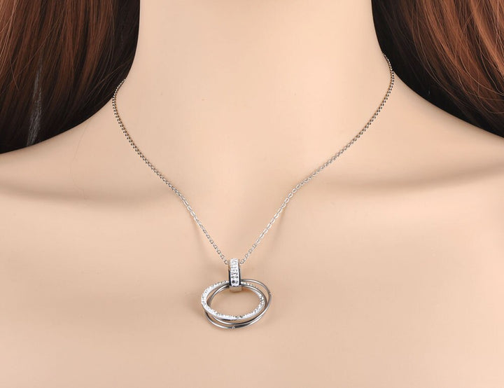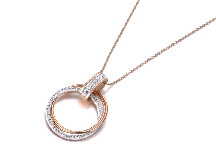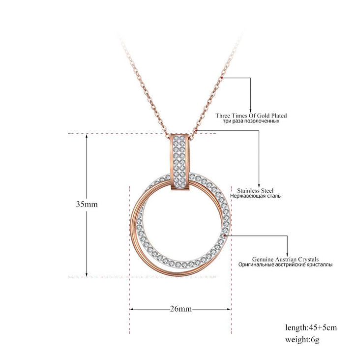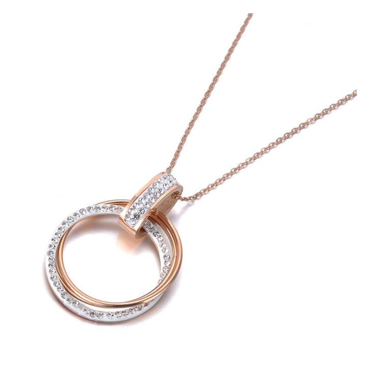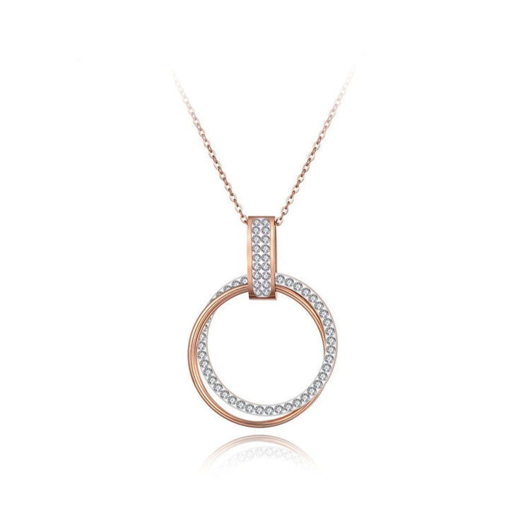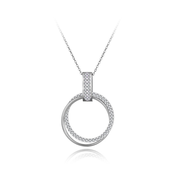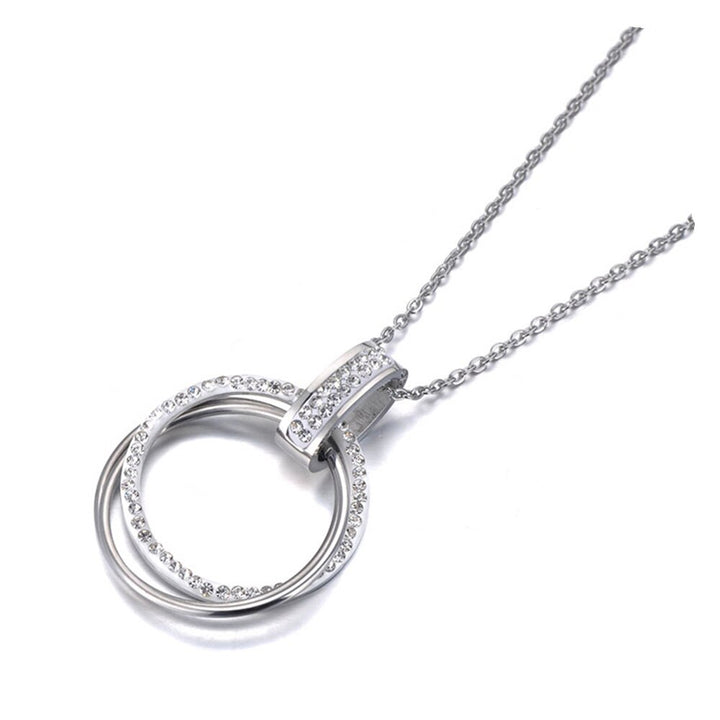 Pave Setting Rhinestone Double Circle Pendant Necklaces