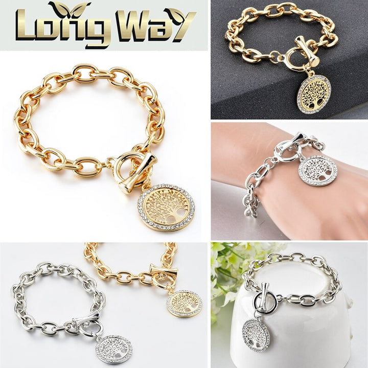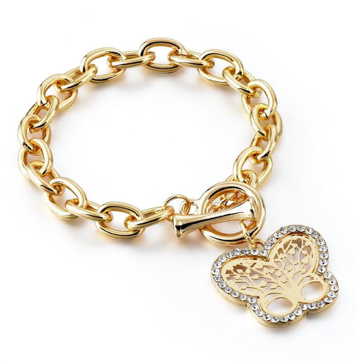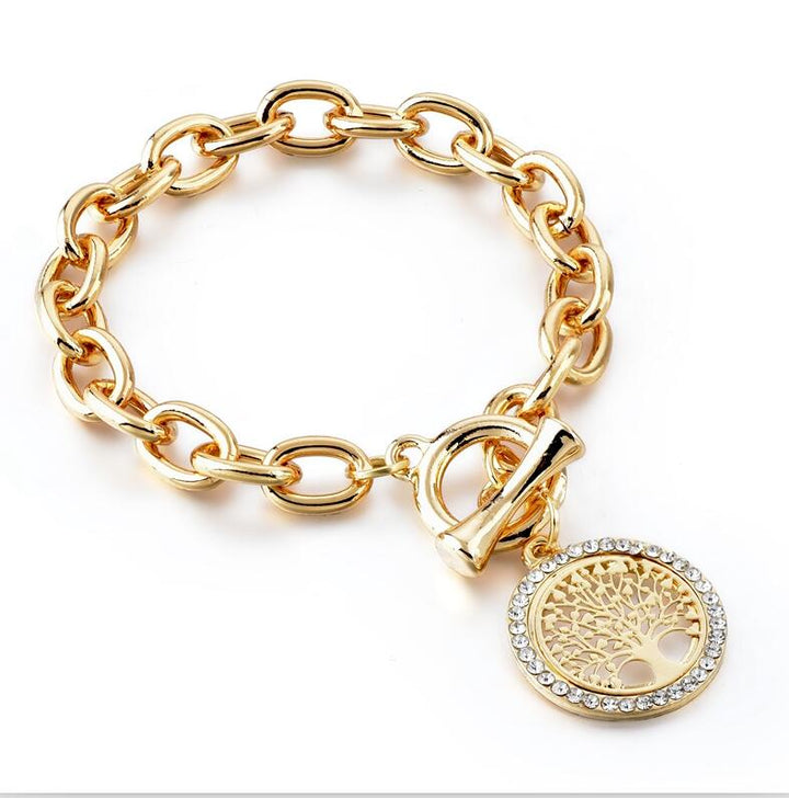 Rhinestone Gold Tree Of Life Charm Bracelets