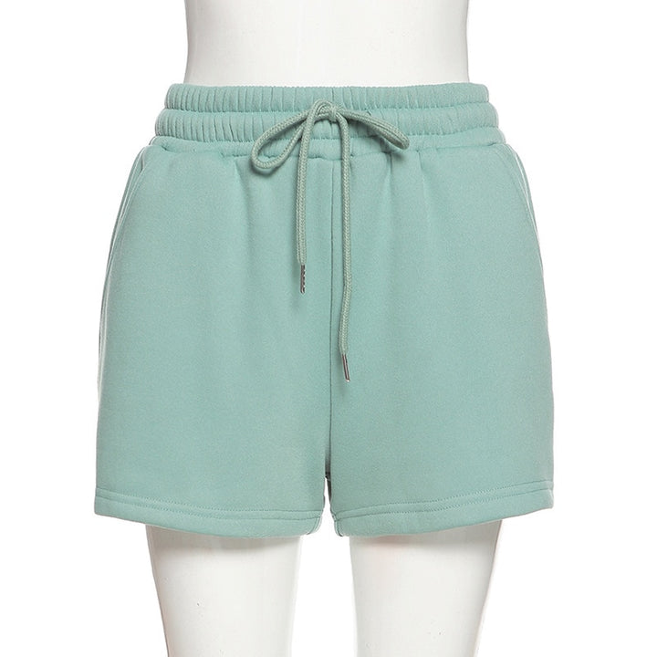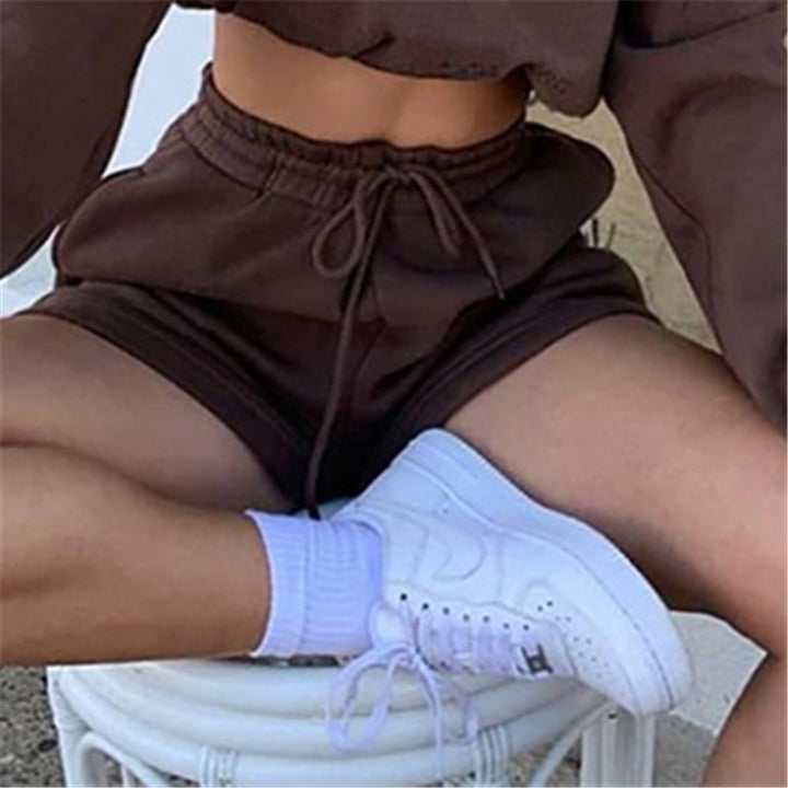 Fleece Pullovers And Drawstring Shorts Two Pieces Set