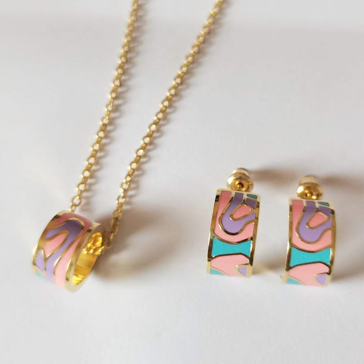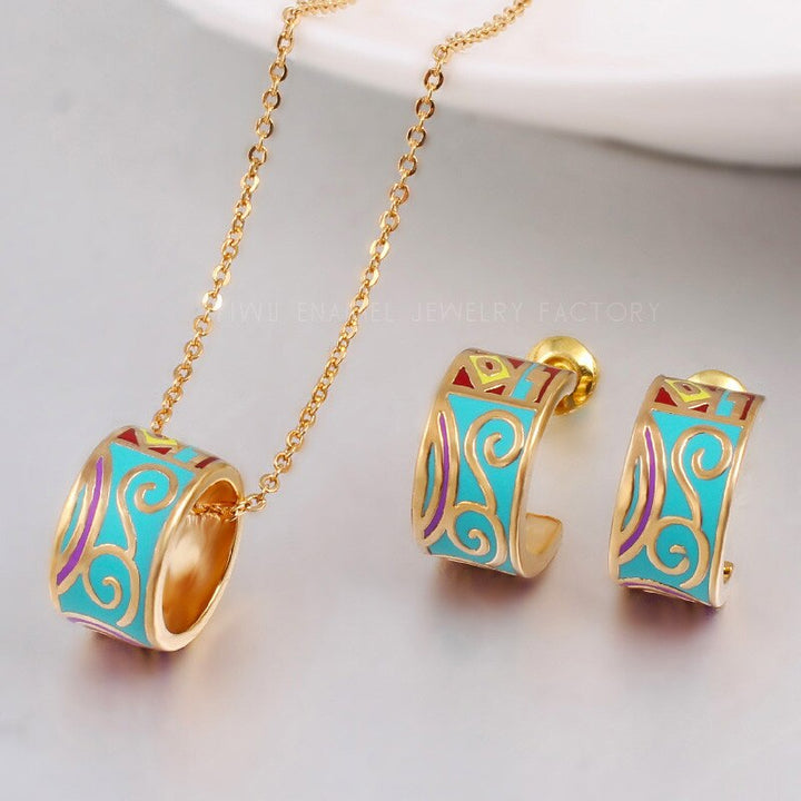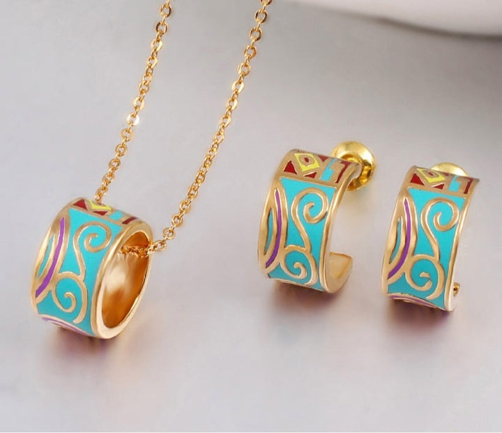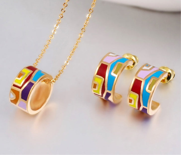 Classic Enamel Color Costume Necklace Earrings Sets