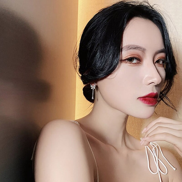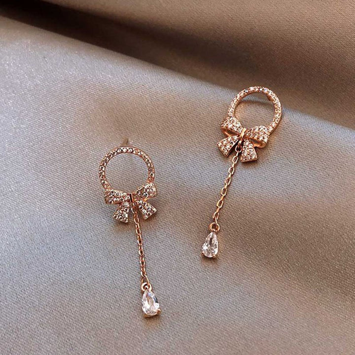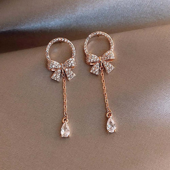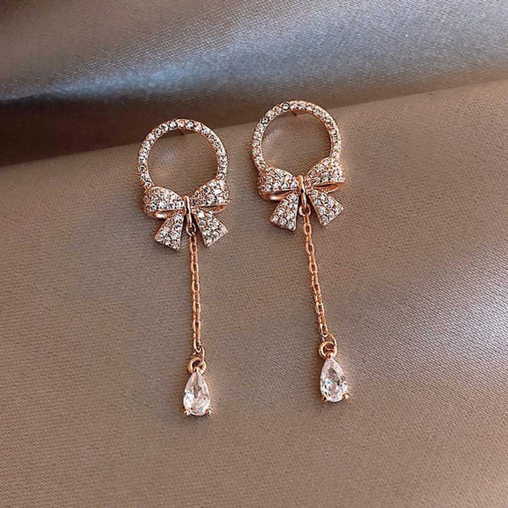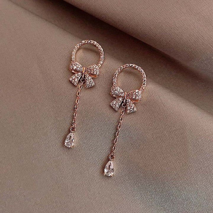 Water Drop Bow Dangle Earrings Bow Tassel Earrings