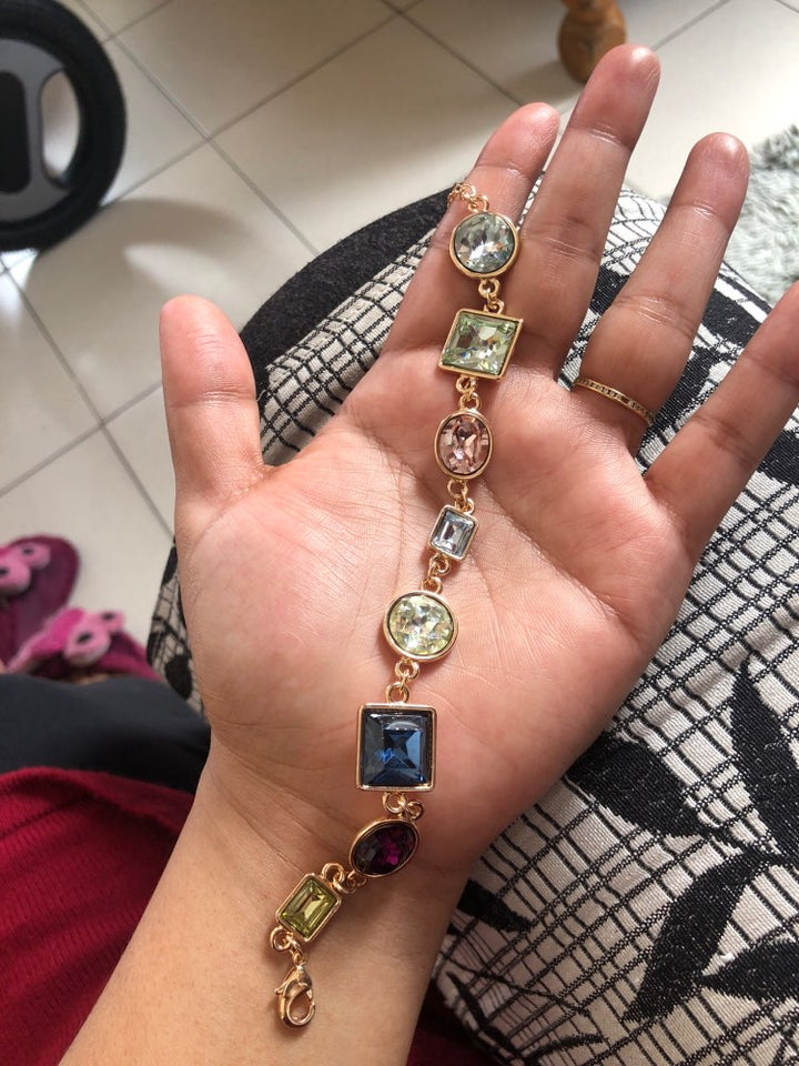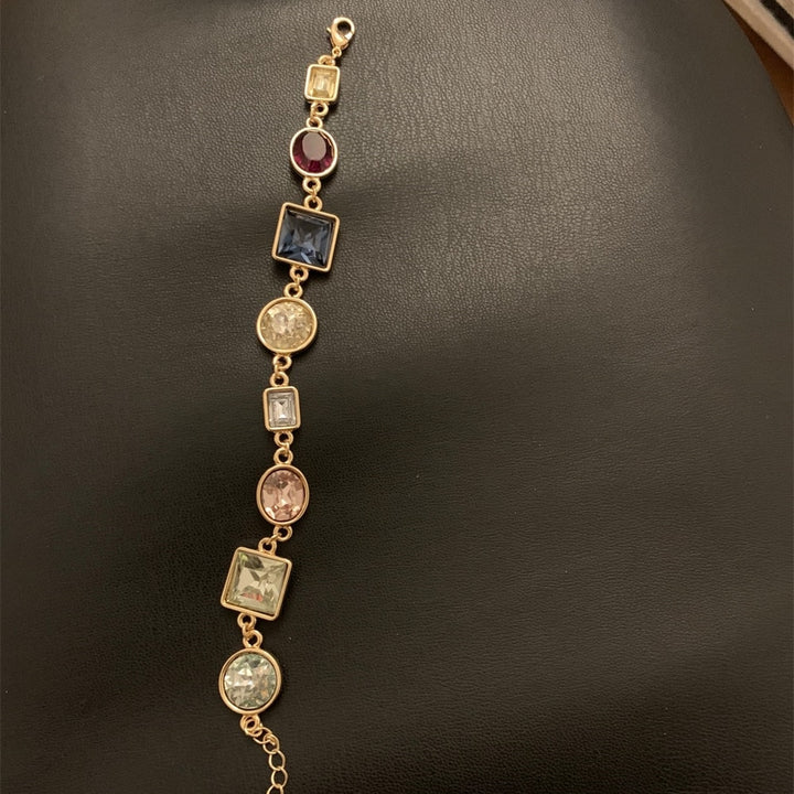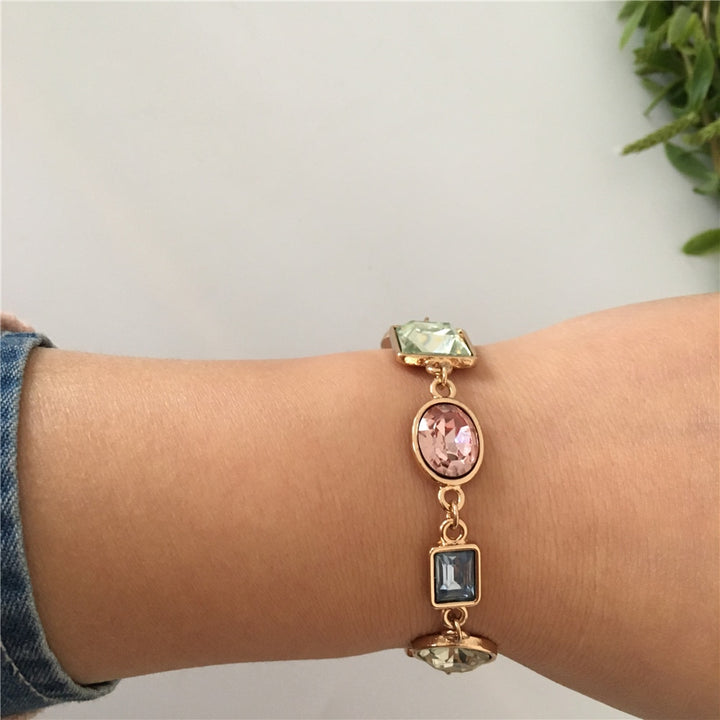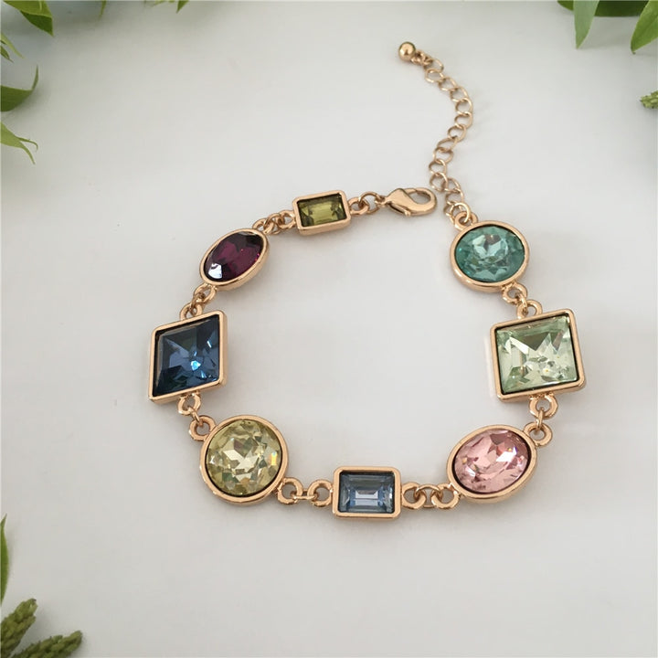 Pretty Gold Color Plating Colorful Stone Statement Bracelet