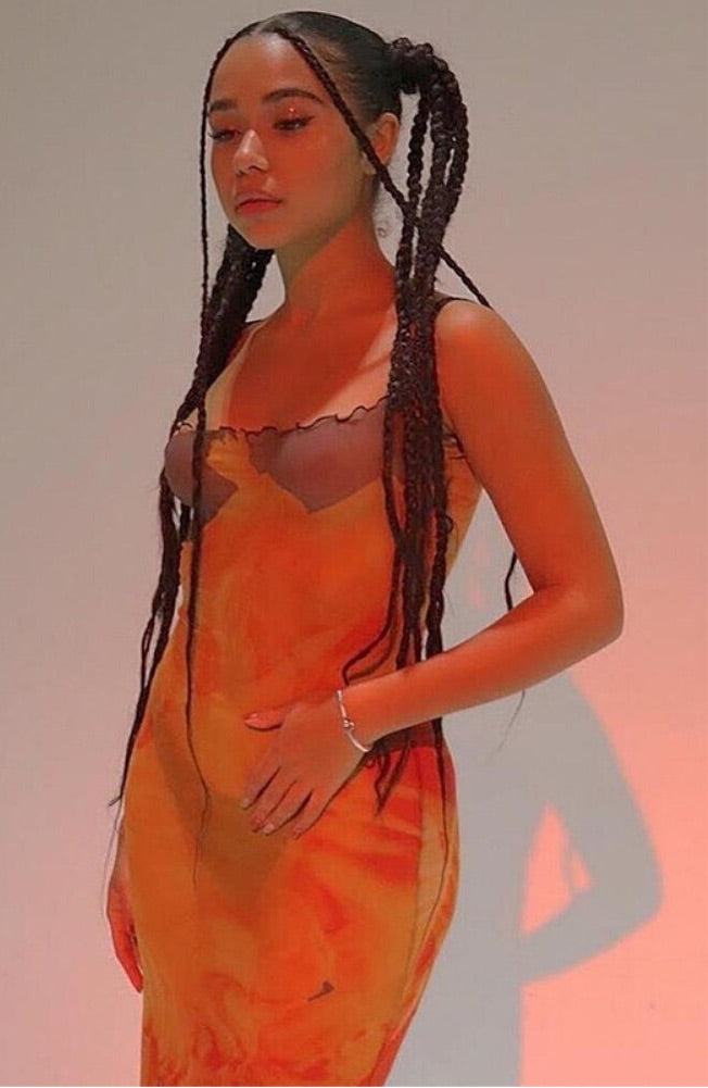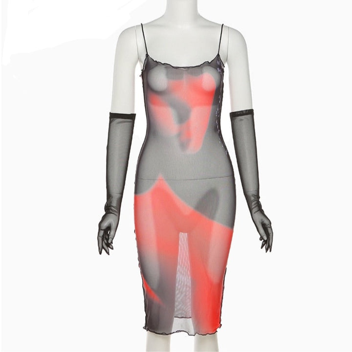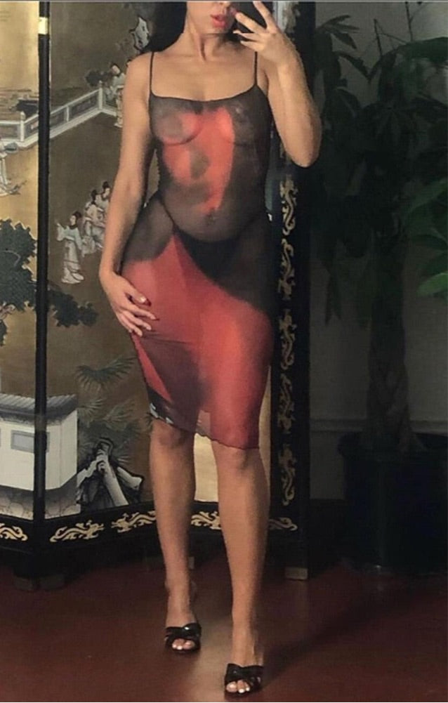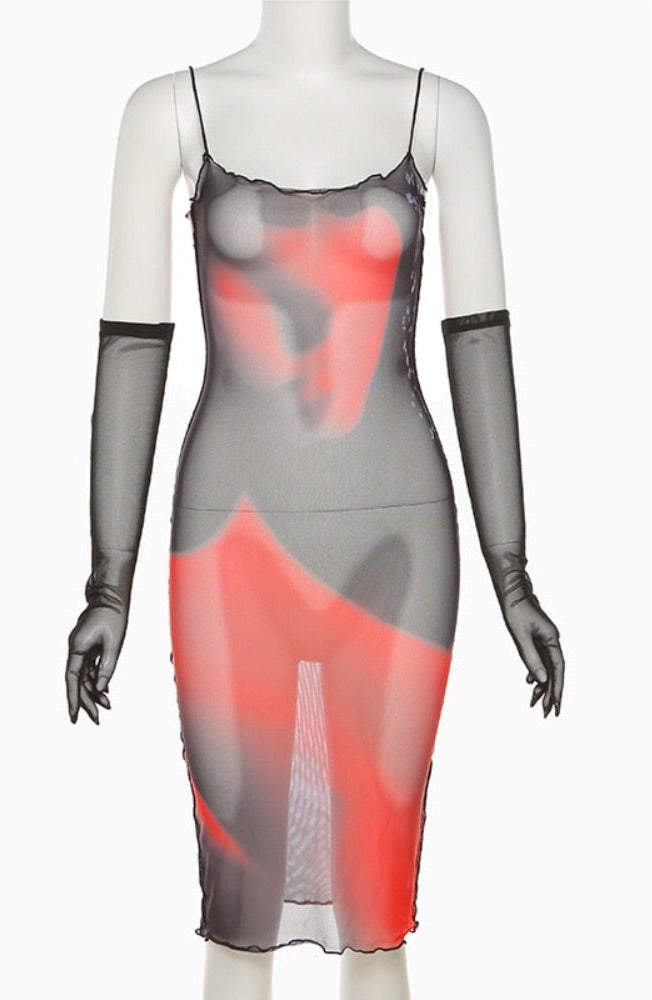 Print Mesh Midi Dress