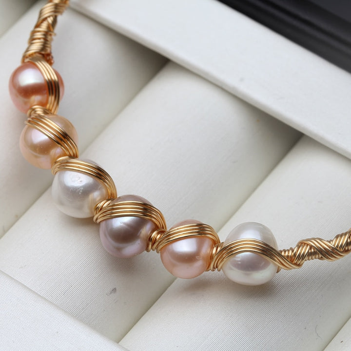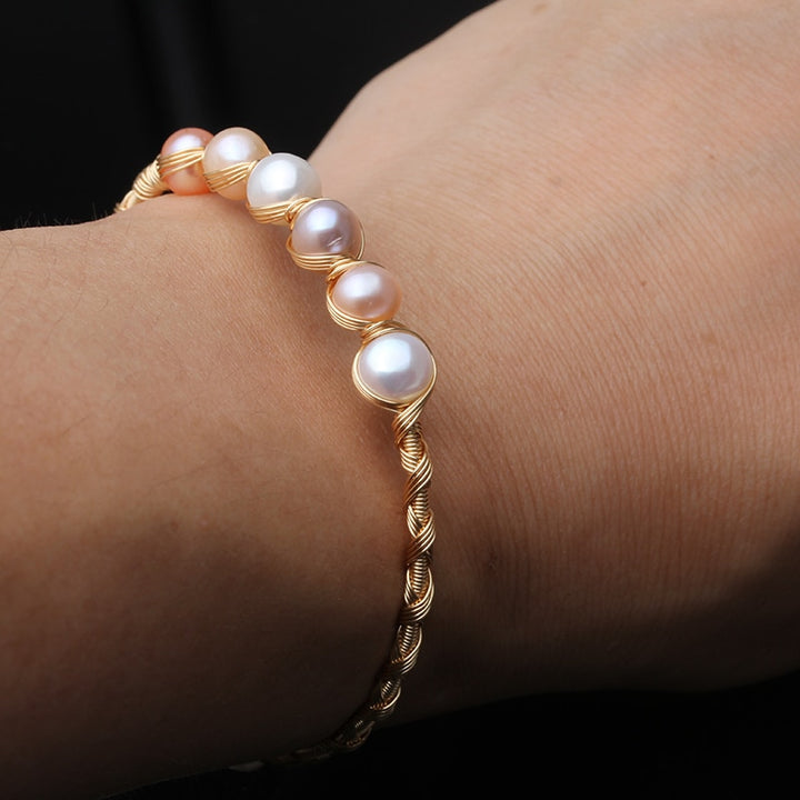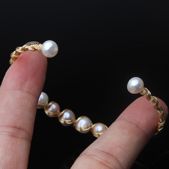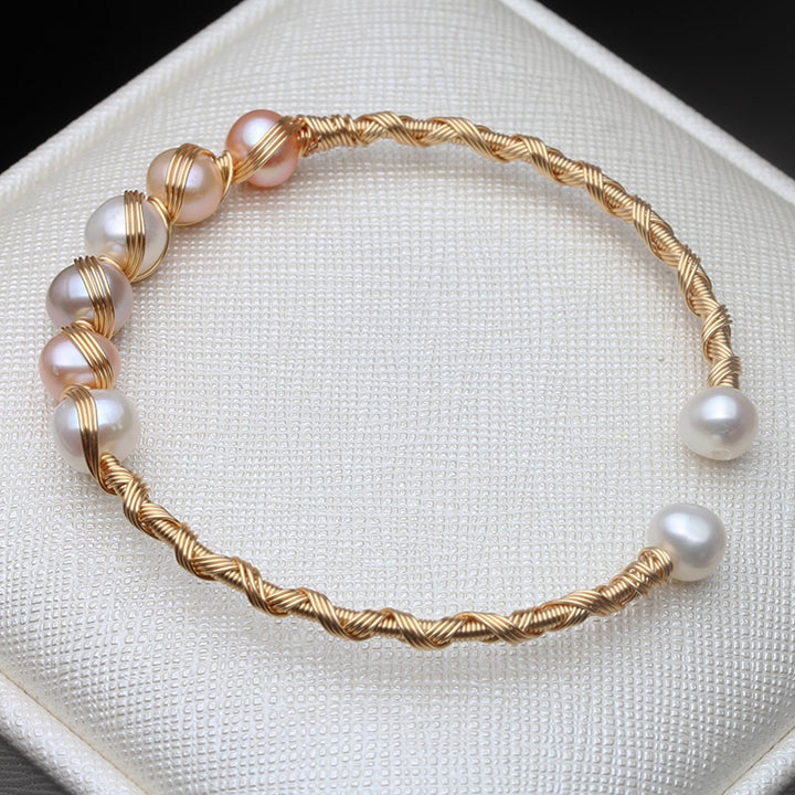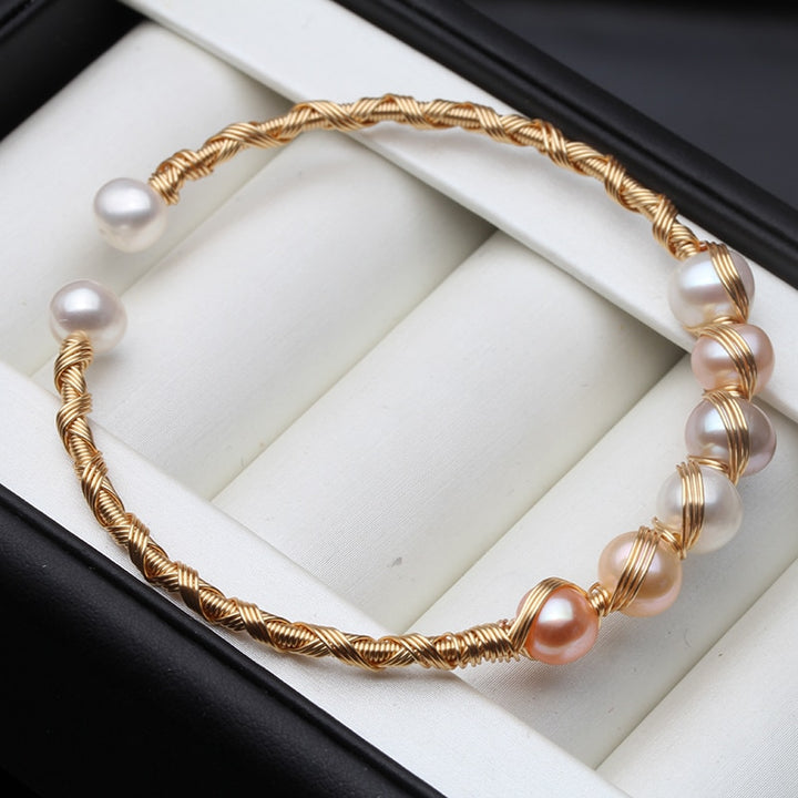 Real Natural Fresh Water Round Pearl Handmade Adjustable Bracelet