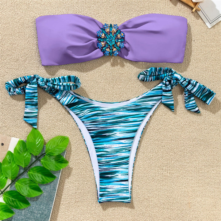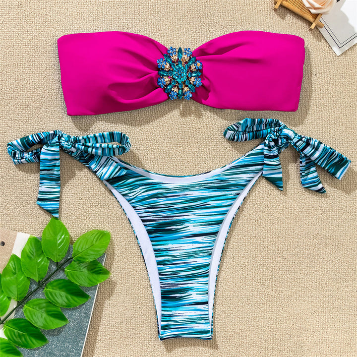 Shiny Rhinestone Strapless Two-pieces Bikini Set