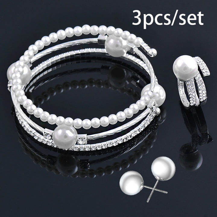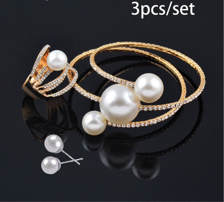 Big Pearl Multilayer Bracelet Rings Earrings Set