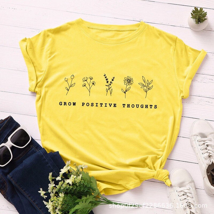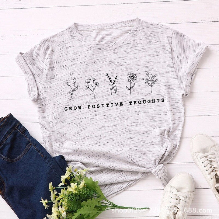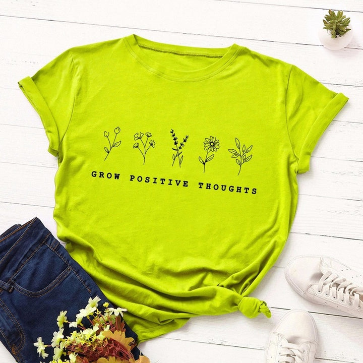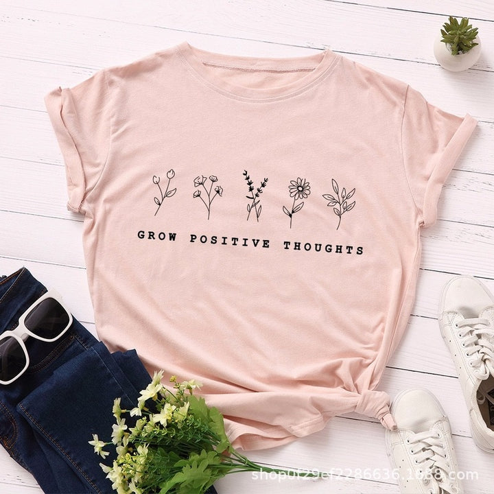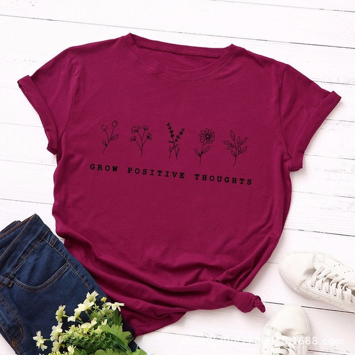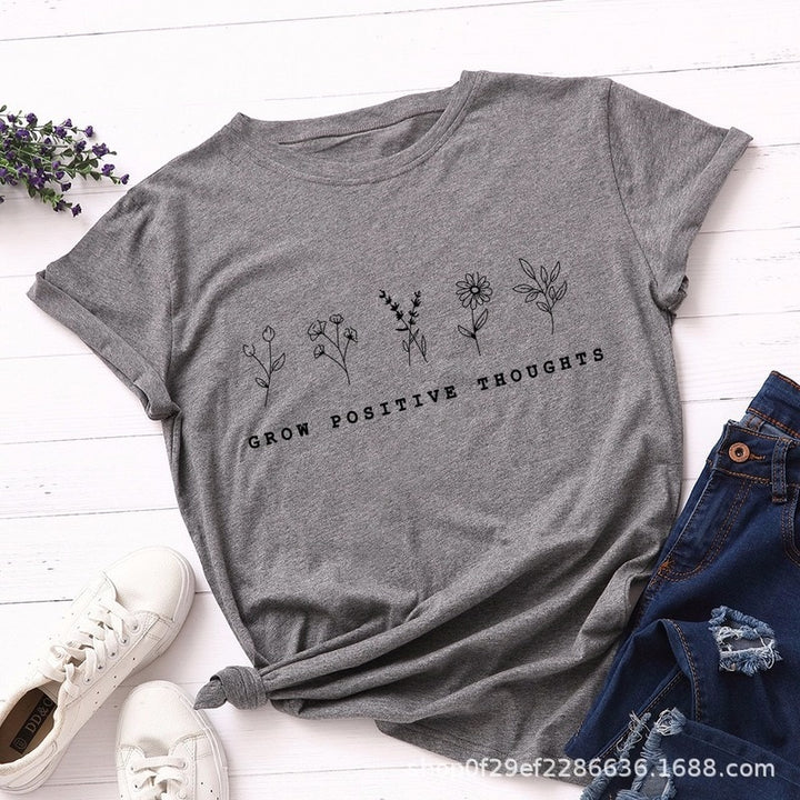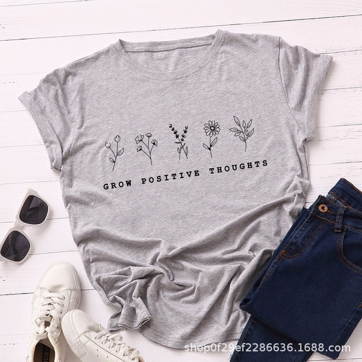 Versatile Cotton Flower Plants Print Short Sleeve Tshirts