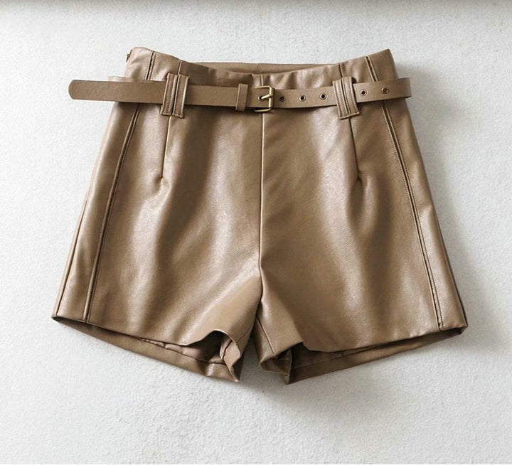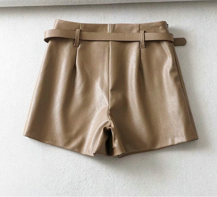 Brown PU Leather Shorts