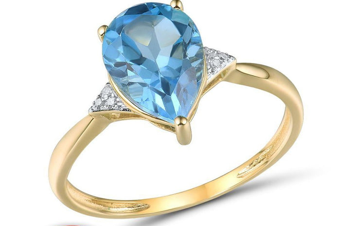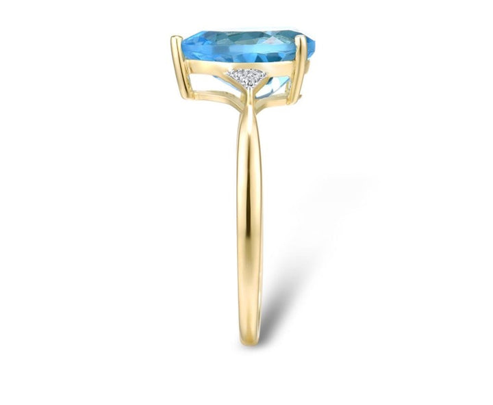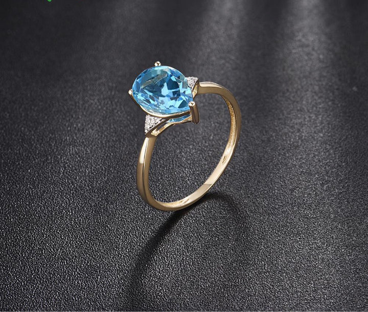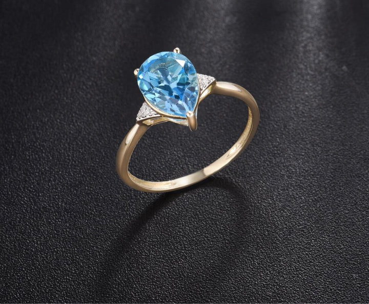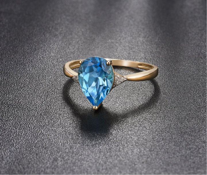 Sparkling Diamond Blue Topaz Pure14K Yellow Gold Ring