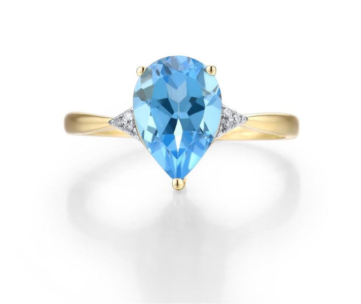 Stone: RD Diamond:6pcs;Pear 10x7mm Swiss Blue Topaz:1pc
