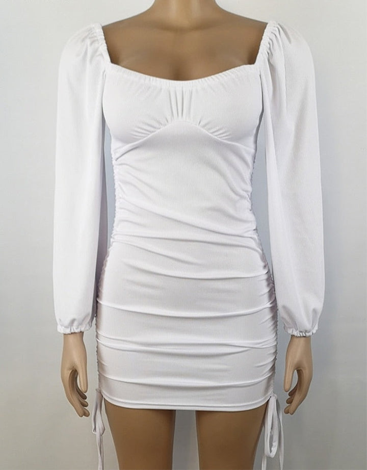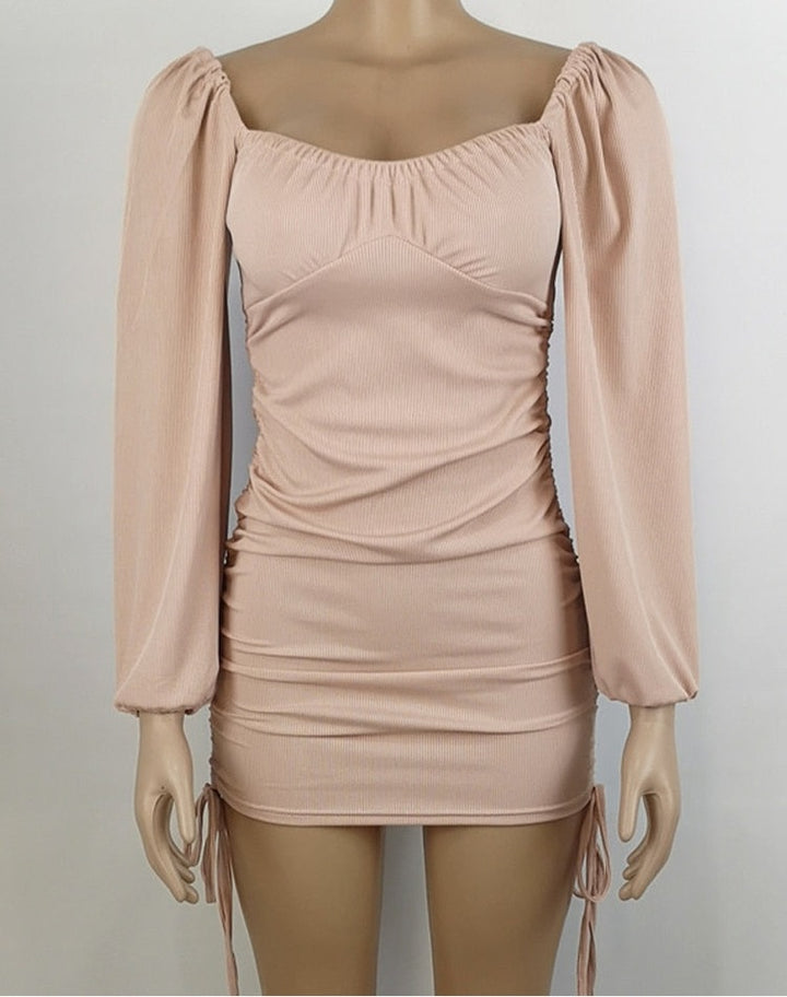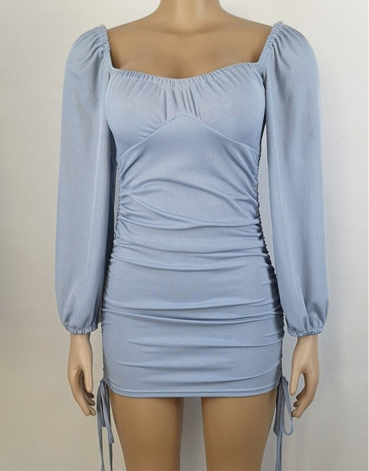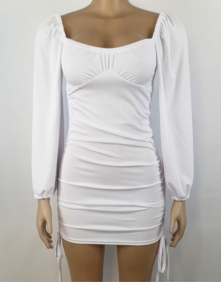 Long Sleeve Drawstring Ruched Bodycon Dress