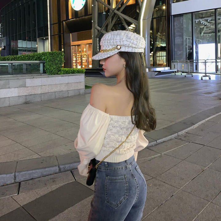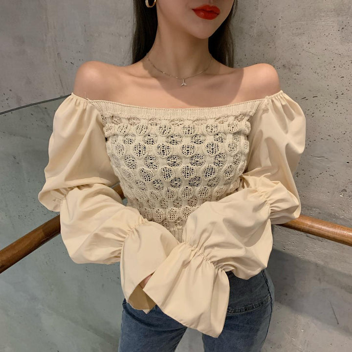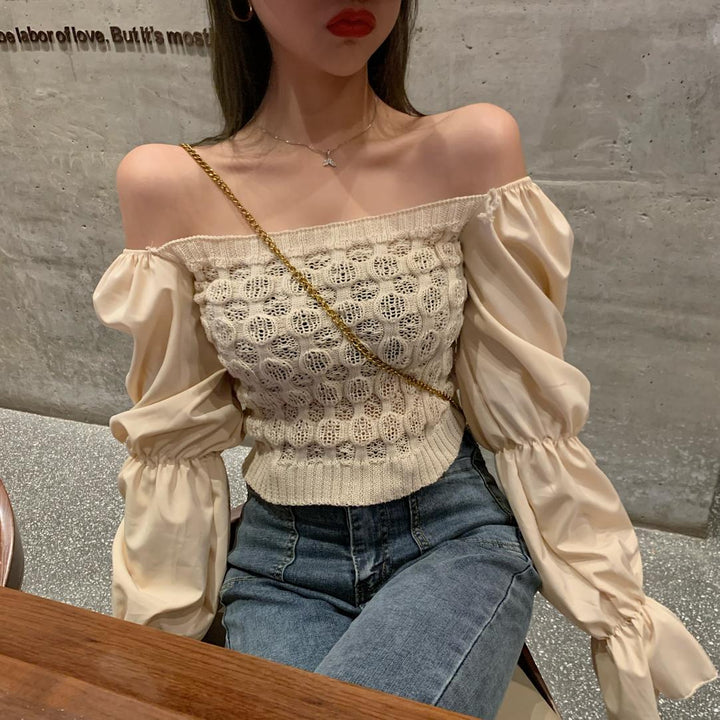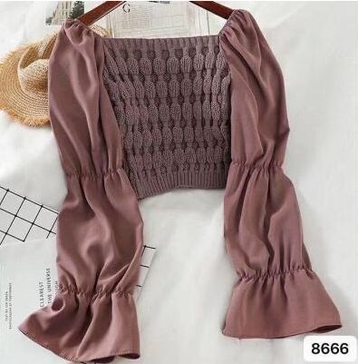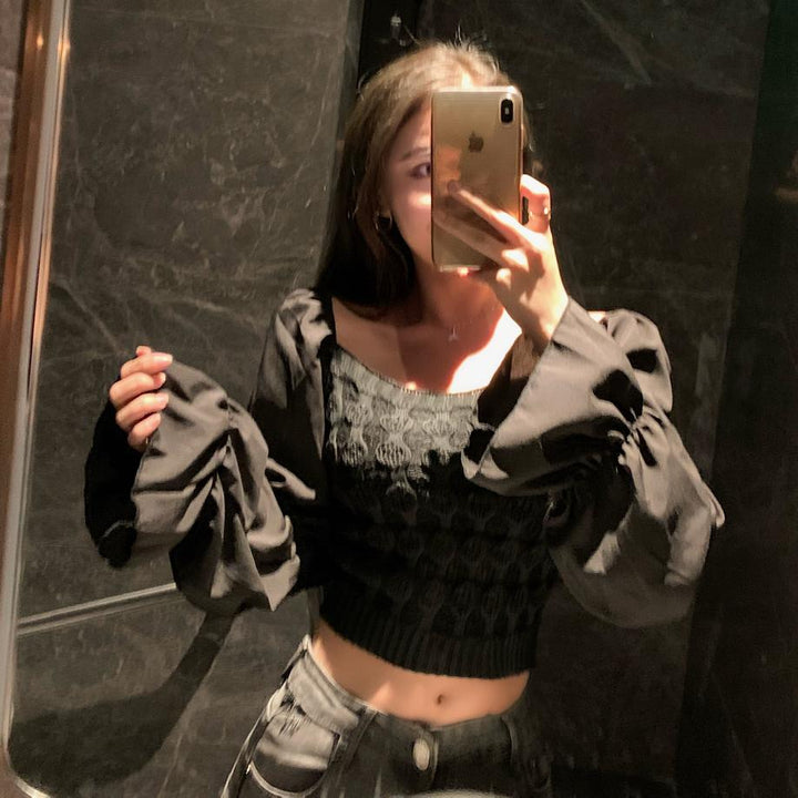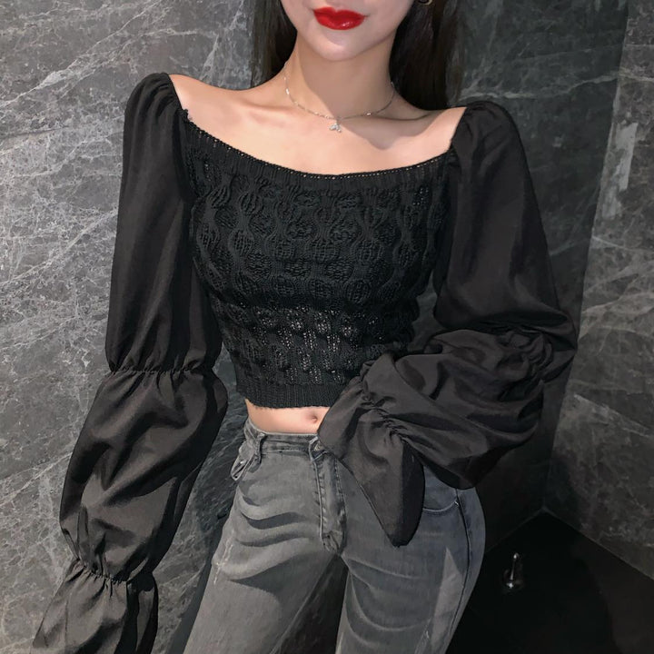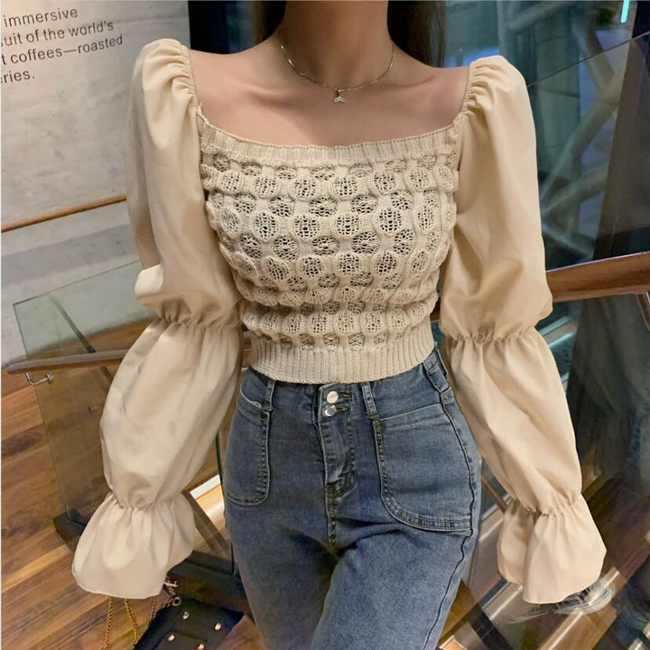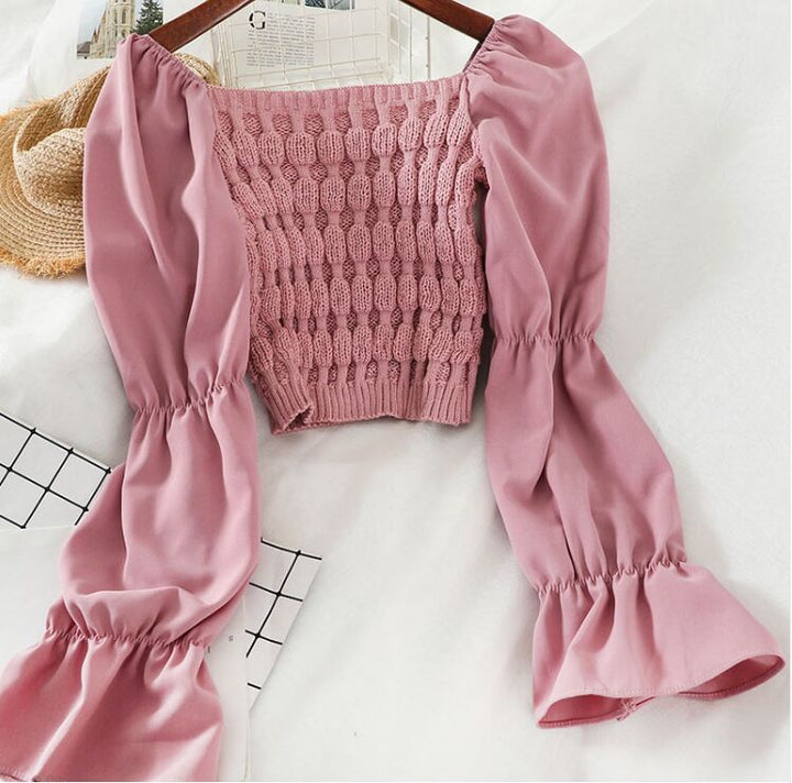 Pullover Crop Top Chiffon Flare Sleeve Sweater