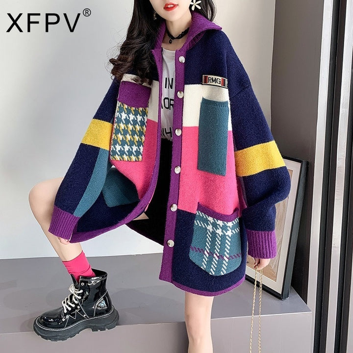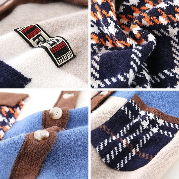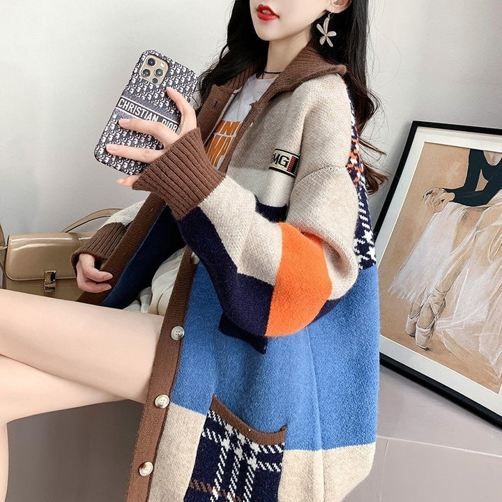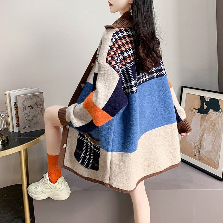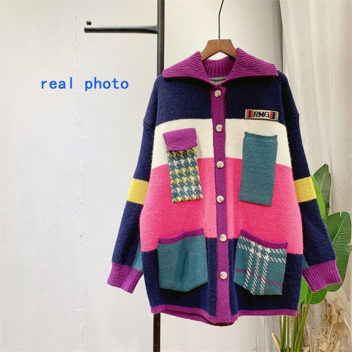 Long Contrast Print Pocket Button Cardigan Sweater